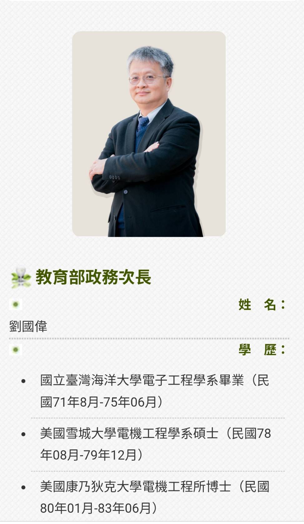 劉國偉校友 接任 教育部政務次長.