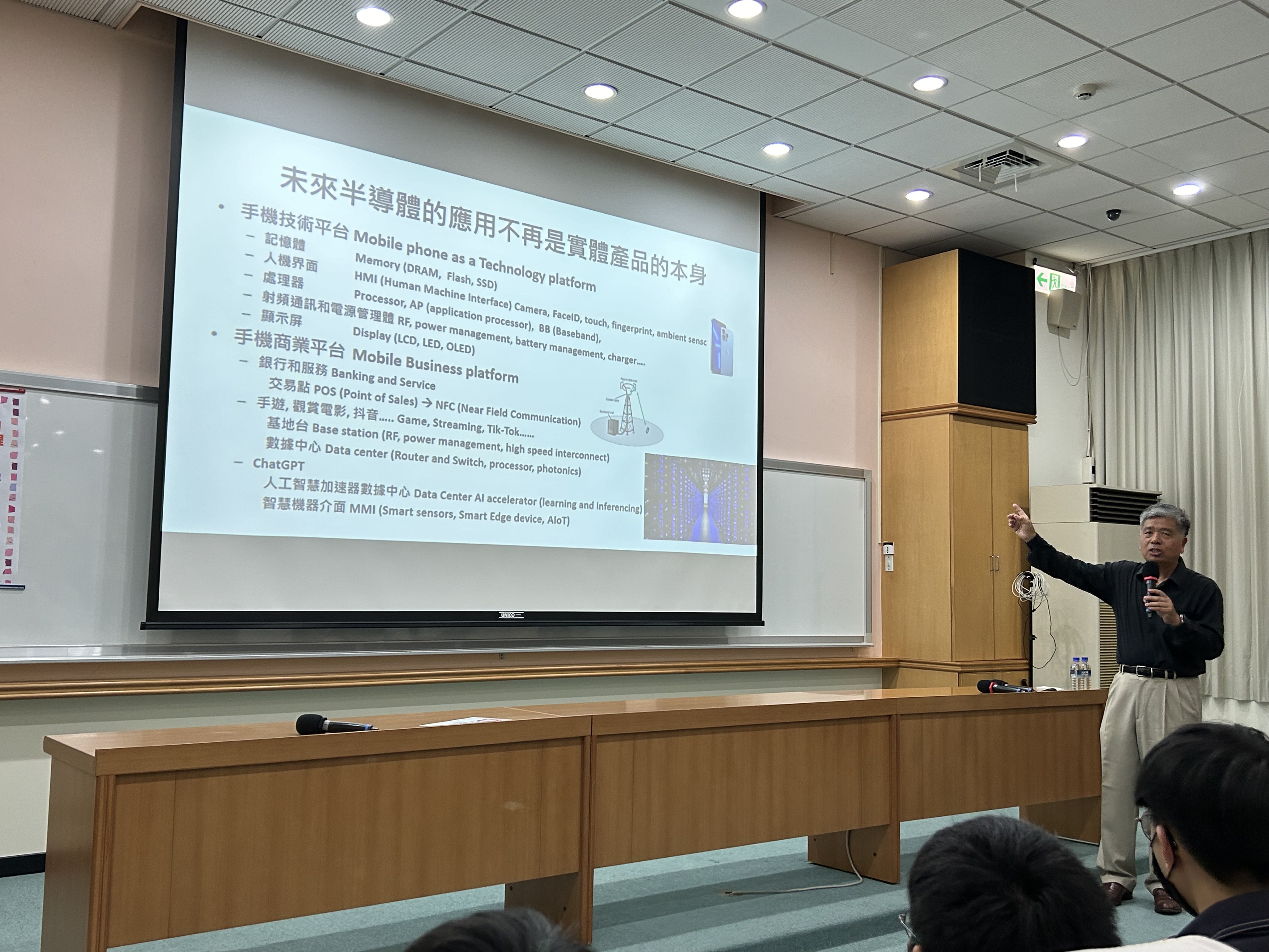 進入正題之前,學長詢問了兩個問題:「財經是什麼?」、「發現問題的價值比較高,還是解決問題的價值比較高?」結合今日演講的主題,是擁有較多數字的半導體產業,期許學弟妹,要懂得數字的意思,而不是看別人的陳述,並做出行動,這是財經;行動之後發現問題,並解決問題,這需要足夠的觀察、表達、判斷及分析能力,結合執行力,才可做到。