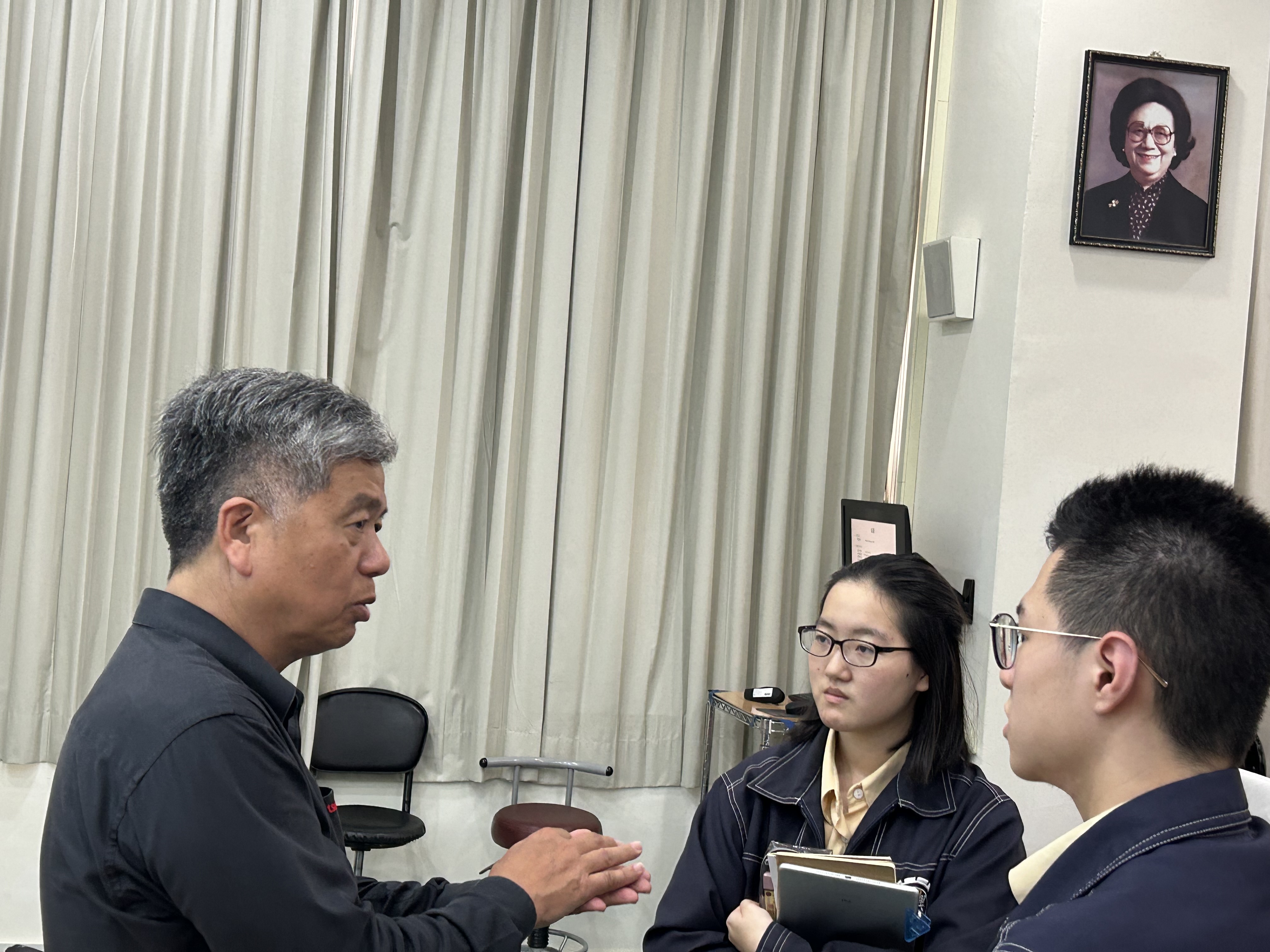 會後,有多位同學留下詢問問題,學長皆一一詳細解答,如高三同學詢問有關理工類組雙主修時,該選擇什麼樣的科系會對未來較有幫助,而學長表示,一個方向是整合類型,另一種,是跨領域學習,而跨領域的學習語言、文化及數理是比較好的,對理工組同學來說,「材料」用不過時,若對電腦資訊有興趣,「軟硬兼施」是最好的。此外,也有同學詢問關於台積電的未來、摩爾定律的極限、石墨烯電晶體現今的發展等等問題,無論是對專業領域還是業界現況皆可學到許多。之後由高三同學陪同學長及夫人前往停車場,並於後山樓梯口拍照留念。