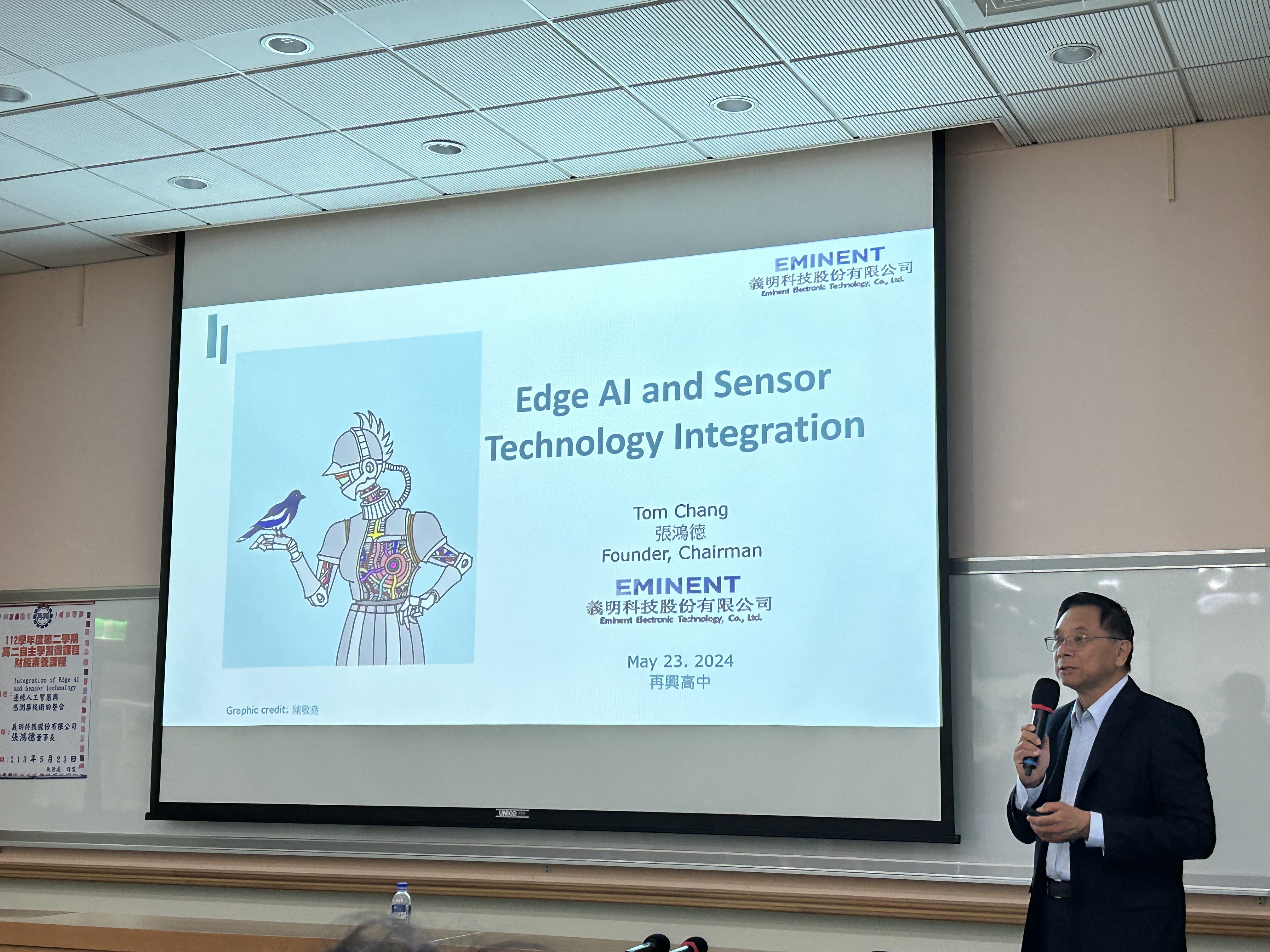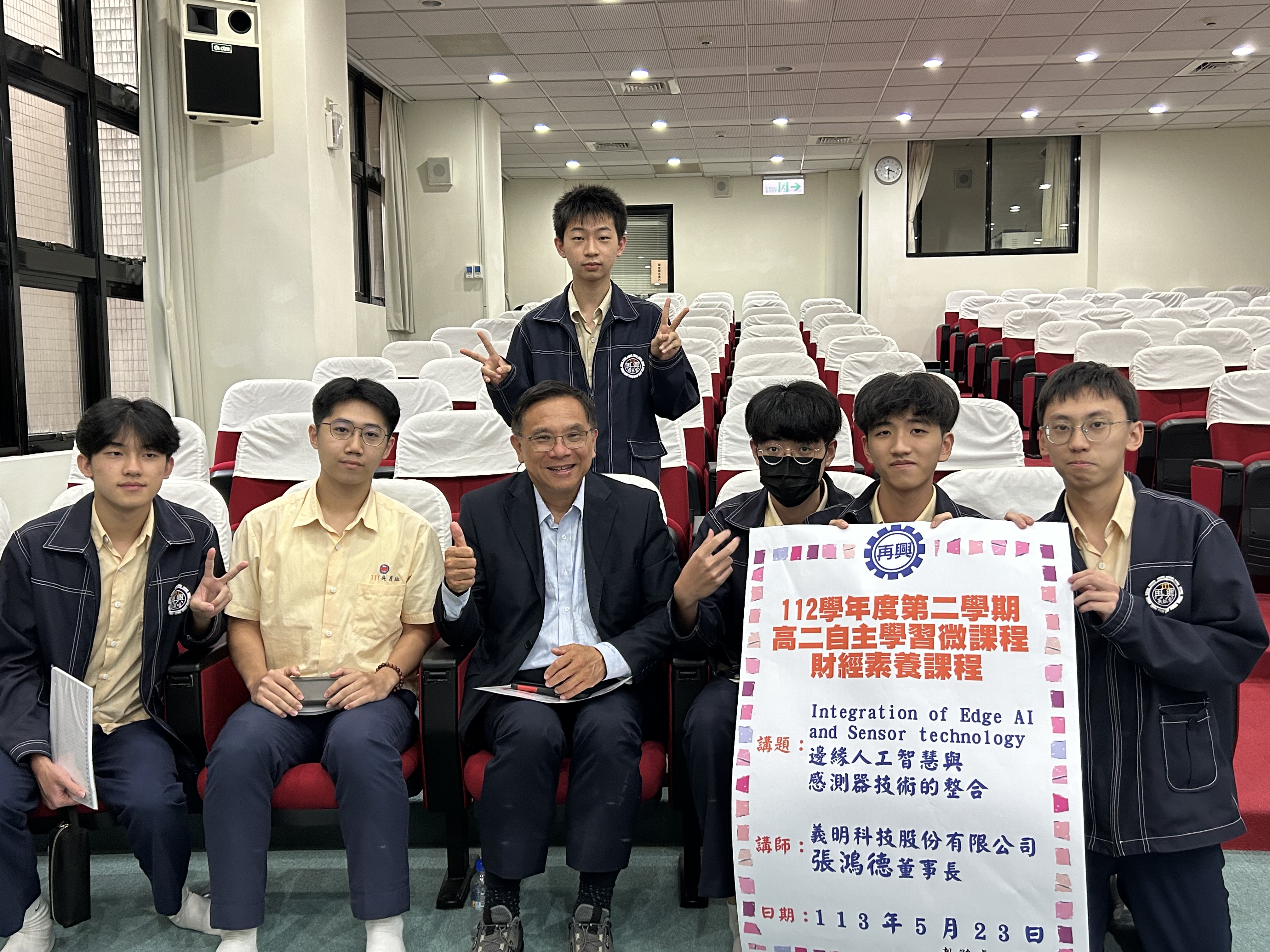 5月23日下午,非常榮幸邀請到義明科技股份有限公司張鴻德董事長蒞校演講,為同學們帶來「Edge AI and sensor Technology Integration」講座。張董事長是再興高中第二屆校友,畢業後就讀清華大學化工系,並赴美進入加州大學戴維斯分校,在矽谷工作25年後回台創業。