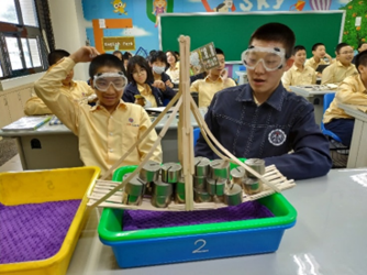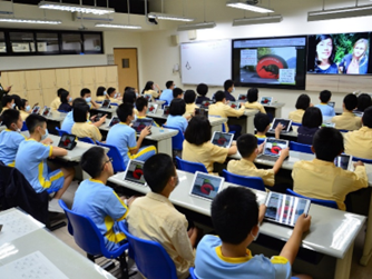 本校與美國BGL教育機構合作,打造專屬再興的全美語遠距課程,每週六節課透過視訊與美國當地教師連線上課,以遠距課室、遠距戶外教學與跨國合作專題,培養學生文化、語言、科技三大核心素養,藉此訓練學生5C能力。
