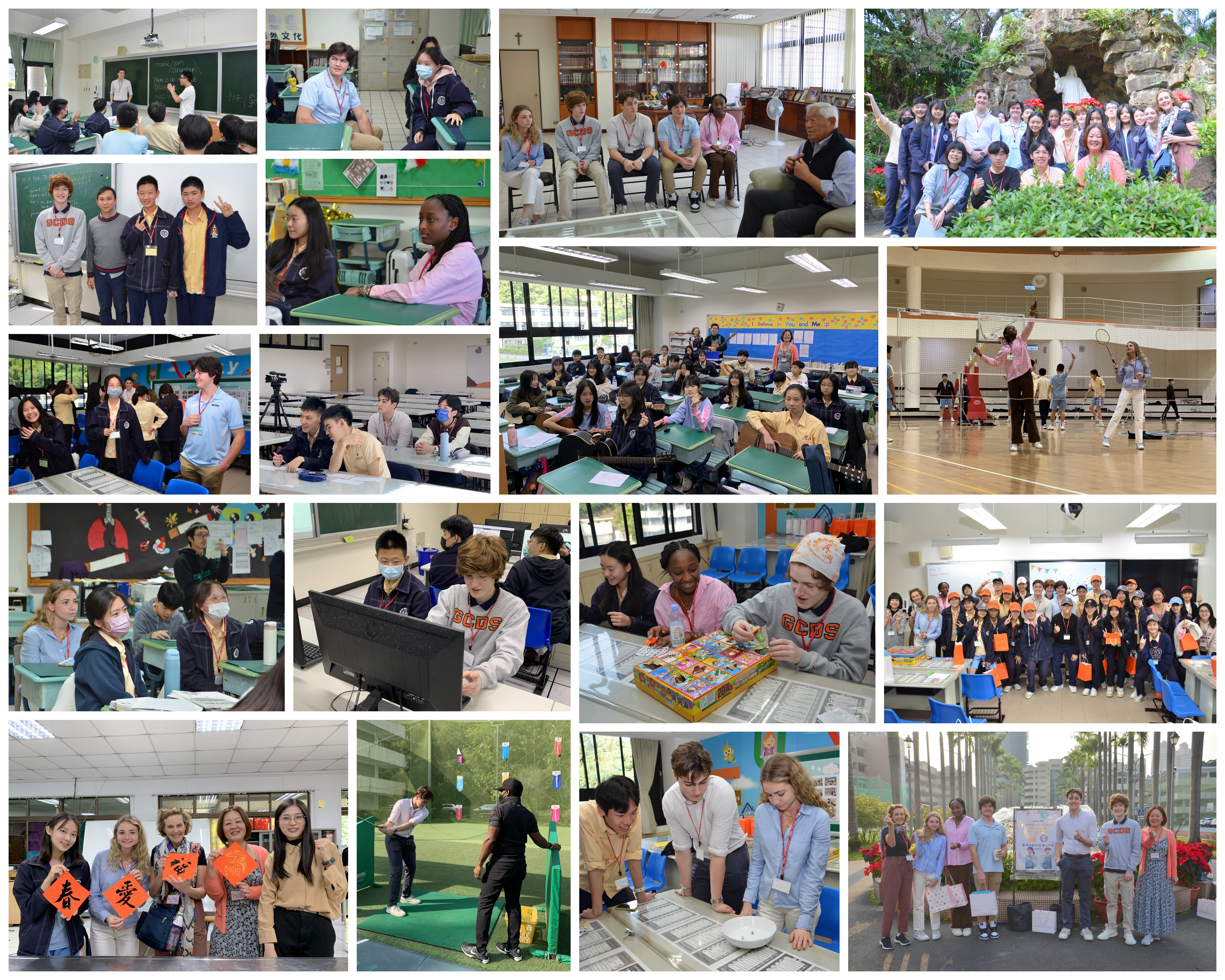 中午GCDS師生享用再興午餐,隨後依序參觀了圖書館、地下室多功能球場與後山清心園,與BWB接待學生有說有笑地度過了悠閒的午後。接著,一行人移動至董事長室,張董事長表達誠摯的歡迎,並與學生們愉快地談話、合影。下午的課程從國中社團課開始,他們分別加入了吉他社、羽球社與高爾夫球社,體驗了豐富多樣的活動。第六節的高中社團課則由BWB社團規劃帶領GCDS學生玩文化遊戲,包含暖場名字遊戲、中西方食物猜謎、繞口令挑戰、十八仔、戳戳樂,現場氣氛熱烈,師生們都玩得不亦樂乎。活動尾聲,雙方學生交換禮物,BWB學生精心準備了禮物包,裡面有卡片、台灣在地特色名產與校長親筆簽名的再興小書包,GCDS學生也回贈學校的紀念帽,大夥兒離情依依,合影並交換聯絡方式,為這次的國際交流活動畫上完美的句點。