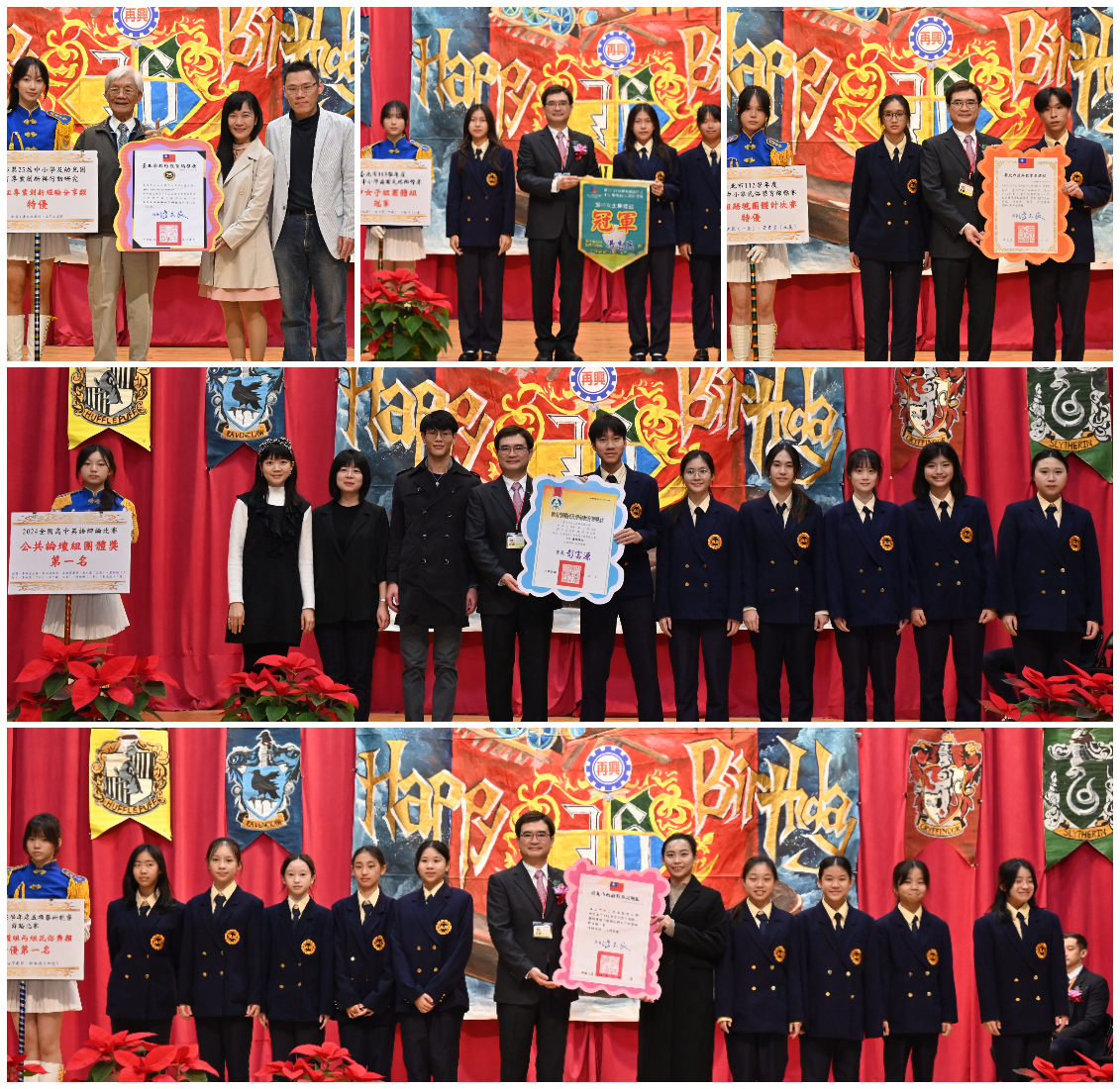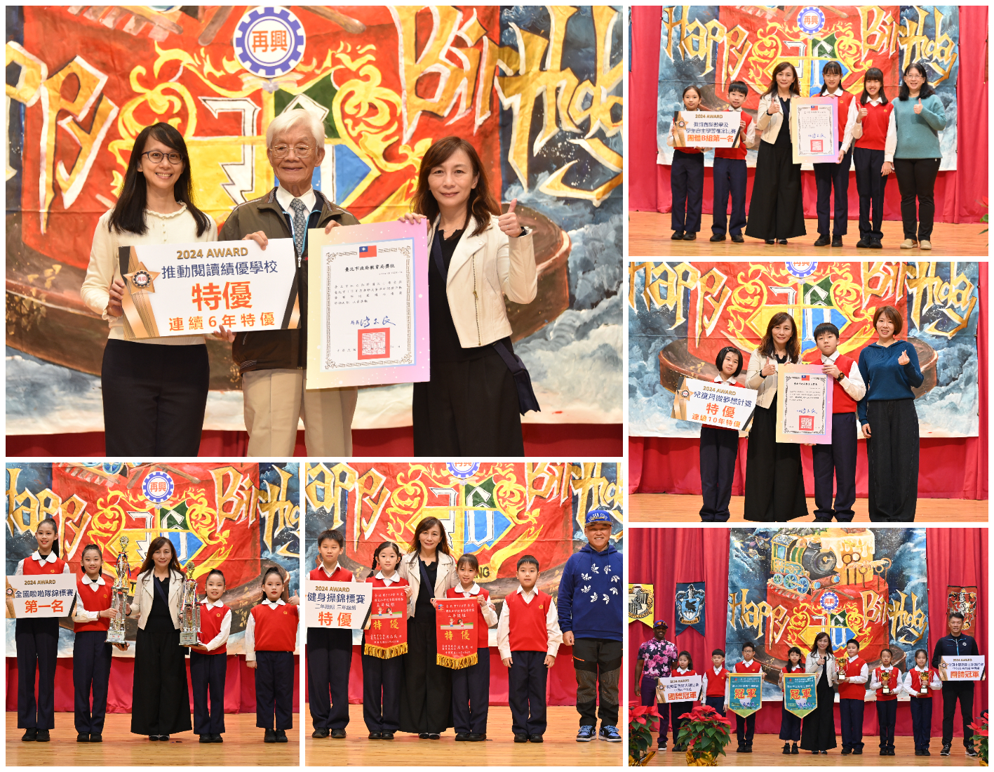 貴賓致詞後,陸續由董事會楊明發董事、小學楊珩校長及中學柯文柔校長分別接受呈獻在113年度中代表學校參加各項校外競賽榮獲團體獎項的老師同學;接續並由小學楊珩校長及中學柯文柔校長分別頒發在113年度中代表學校參加各項校外競賽榮獲個人獎項的老師同學。