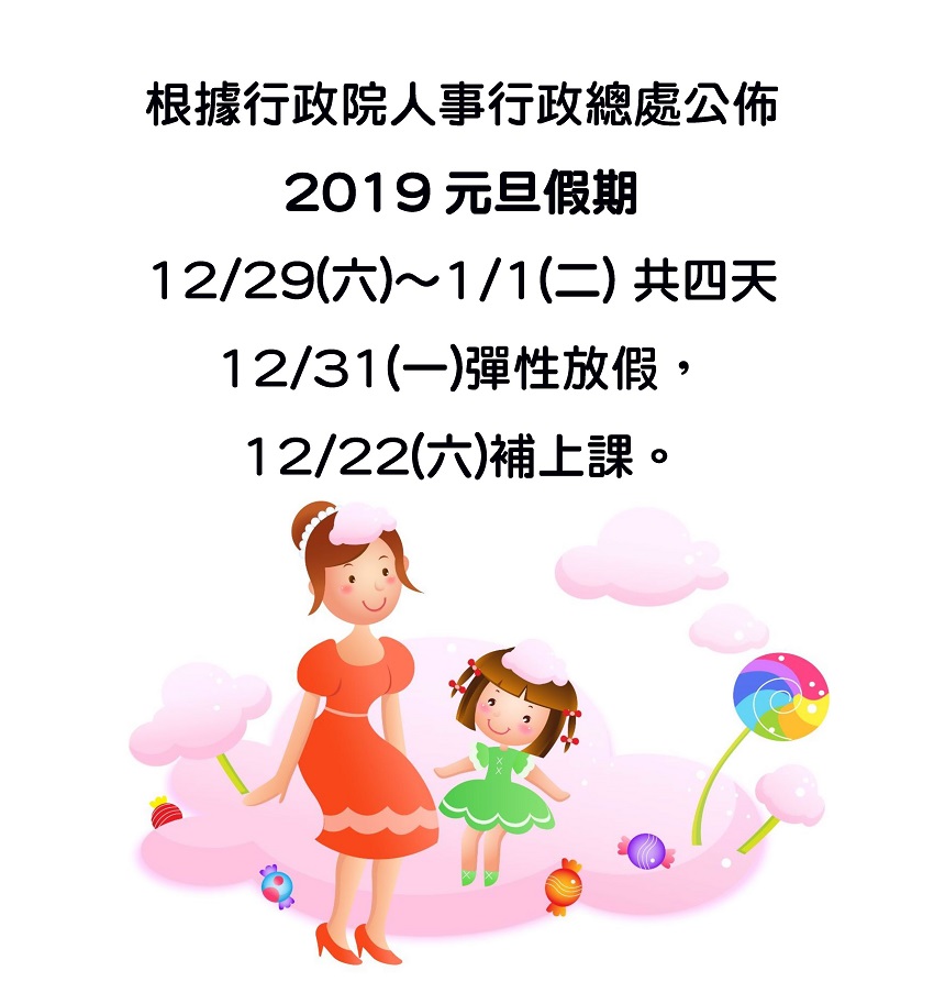元旦連假12月22日(六)補上課!