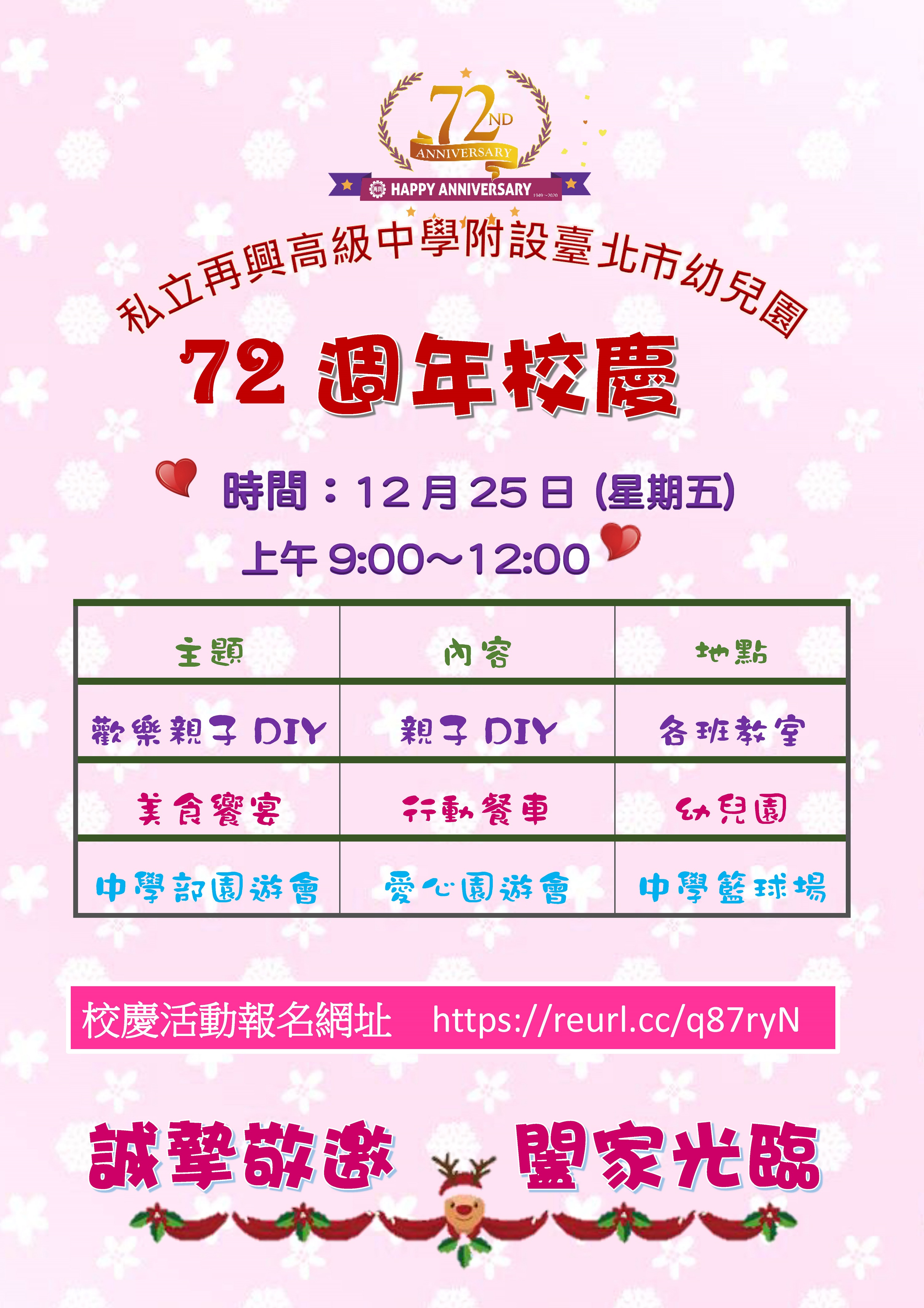 再興學校72周年校慶~歡迎闔家蒞臨,敬請上網報名!