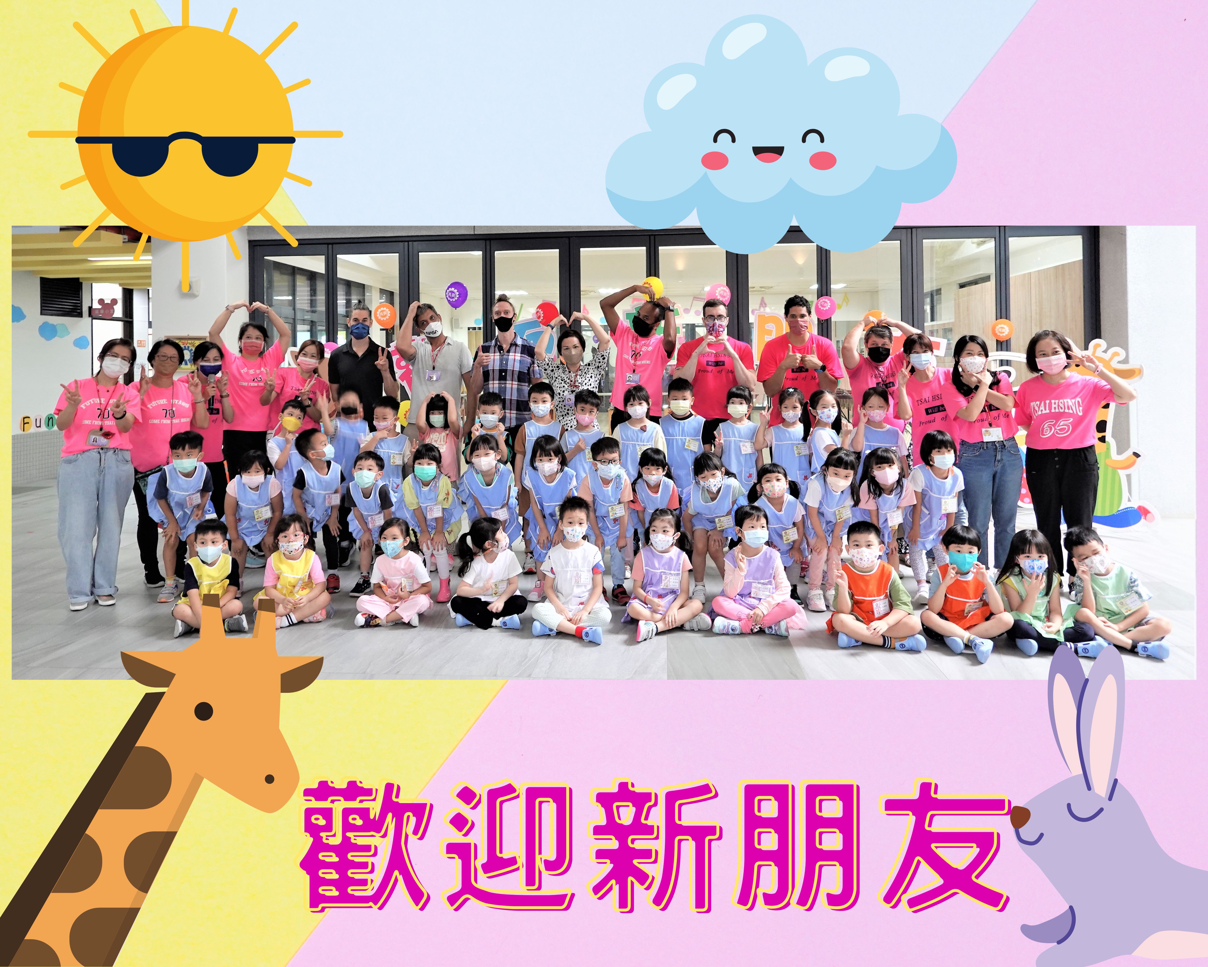 9月5日(一)上午舉行「111學年度迎新會」,歡迎今年剛加入再興大家庭的小寶貝們,老師們精心安排歌唱、舞蹈、體操、團康遊戲等活動,希望以歡樂的氣氛,陪伴鼓勵初次上學的孩子,勇敢度過適應期。