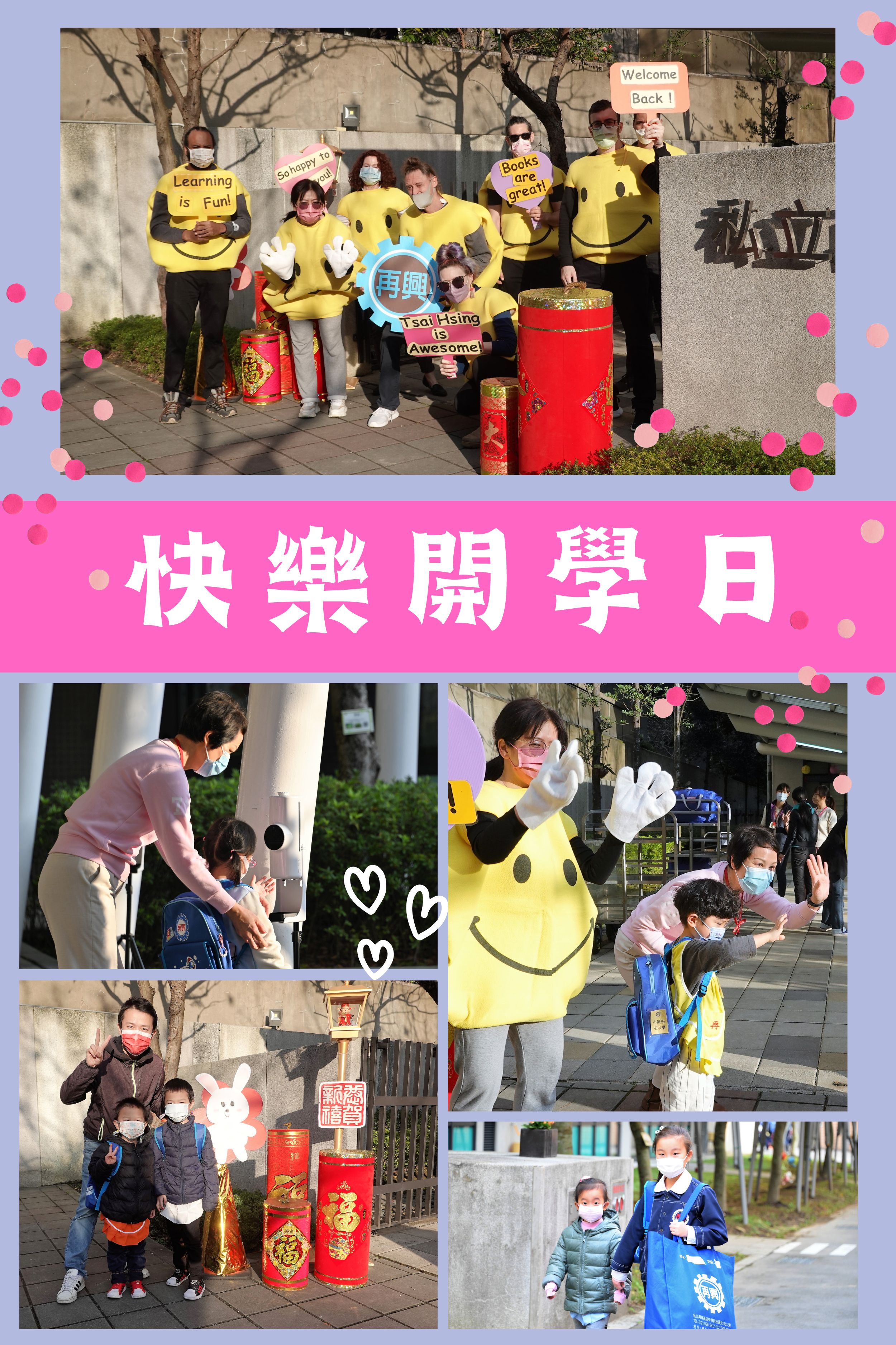 2月13日(一) 是再興寶寶開學日,老師們活力滿滿,換上可愛的陽光笑臉,伴隨著暖暖的冬陽,一起在校門口迎接元氣滿滿的再興寶寶,天天快樂上學校!
