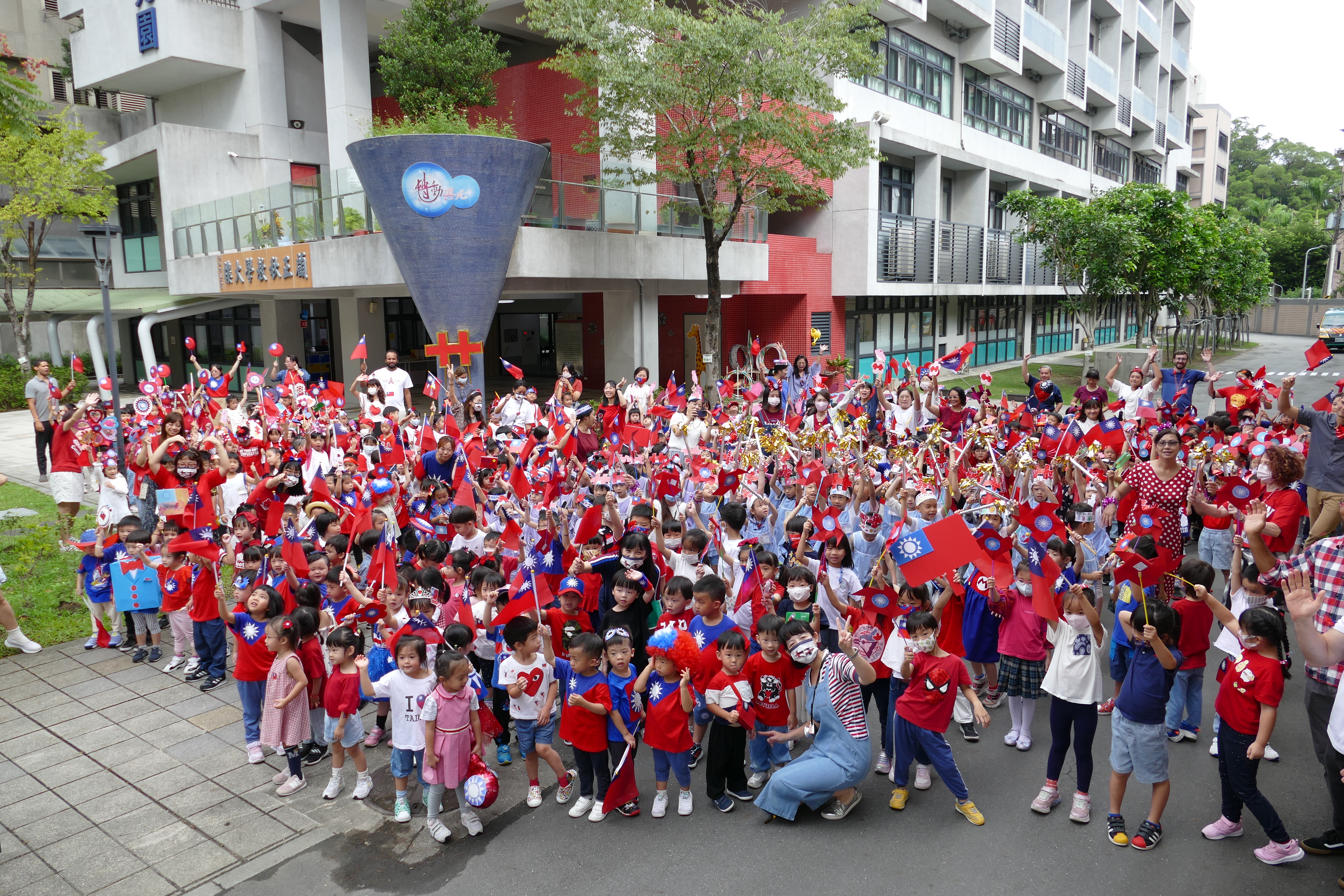 10月6日(五)幼兒園舉行慶祝國慶日遊行大會,各班分別規劃不同的遊行路線,全園幼兒戴著精心製作的道具,歡唱歌曲、呼喊口號,揮舞著青天白日滿地紅的國旗,祝福中華民國生日快樂!