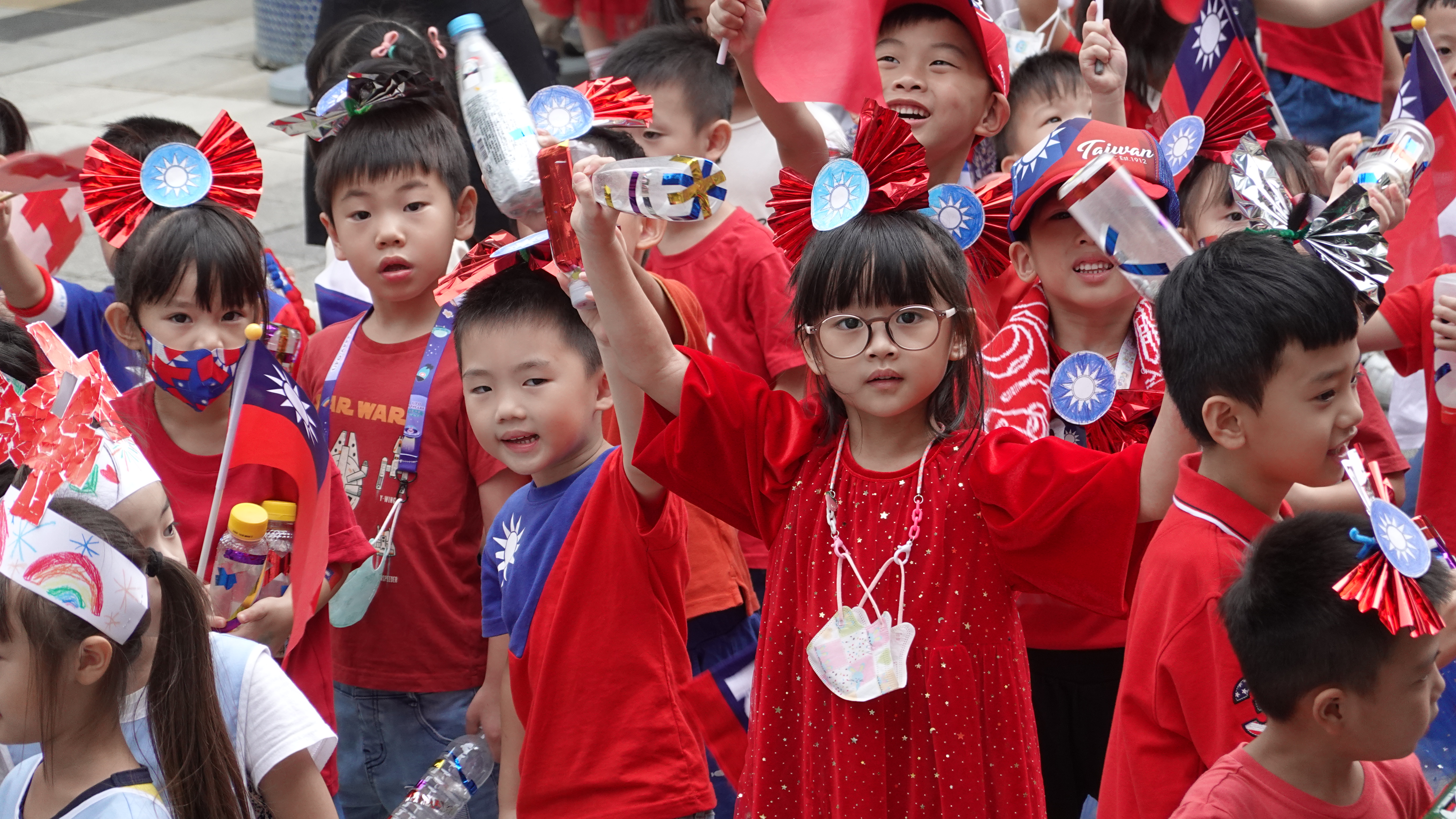 10月6日(五)幼兒園舉行慶祝國慶遊行大會,全園幼兒戴著精心製作的道具,歡唱國慶歌曲、呼感口號,揮舞著青天白日滿地紅的國旗,祝福中華民國生日快樂!