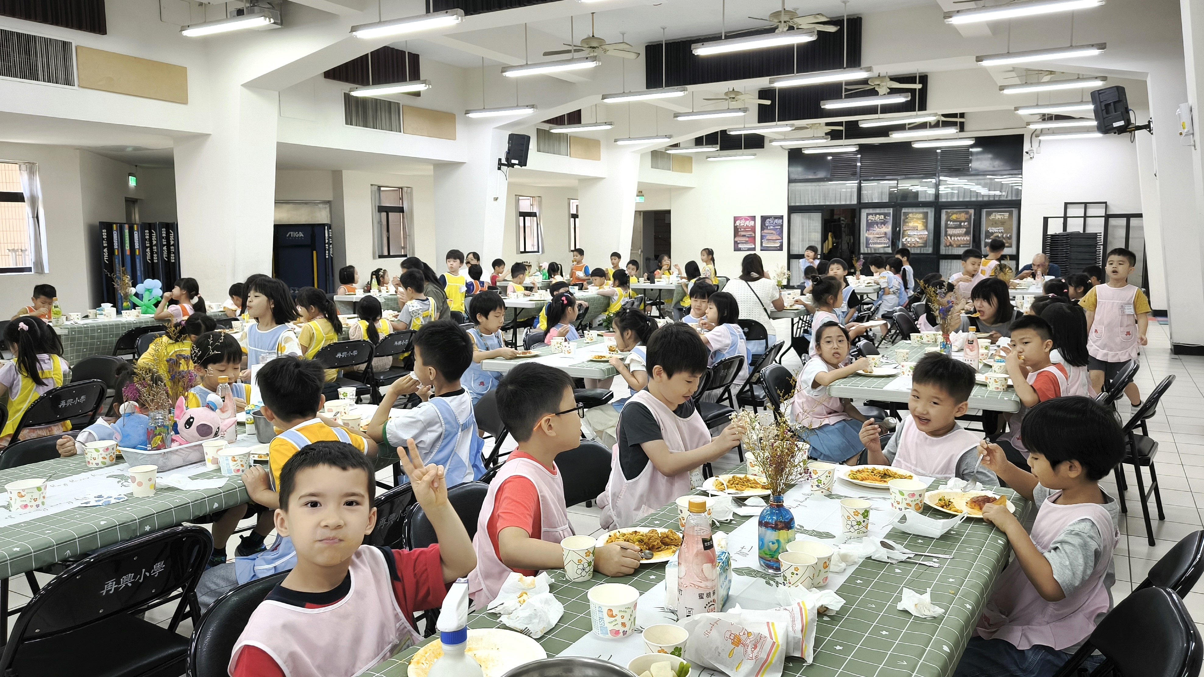 6月20日(四)中午在小學禮堂舉行「畢業感恩餐會」,大班師生共聚一堂,品嚐由學校準備的愛心餐點。小小畢業生們協助餐桌佈置與餐點擺放,將會場裝扮的溫馨又舒適,以一顆感恩的心來感受師長滿滿的愛。園長媽咪祝福畢業生們畢業快樂,永遠記得在再興幼兒園度過的歡樂時光。