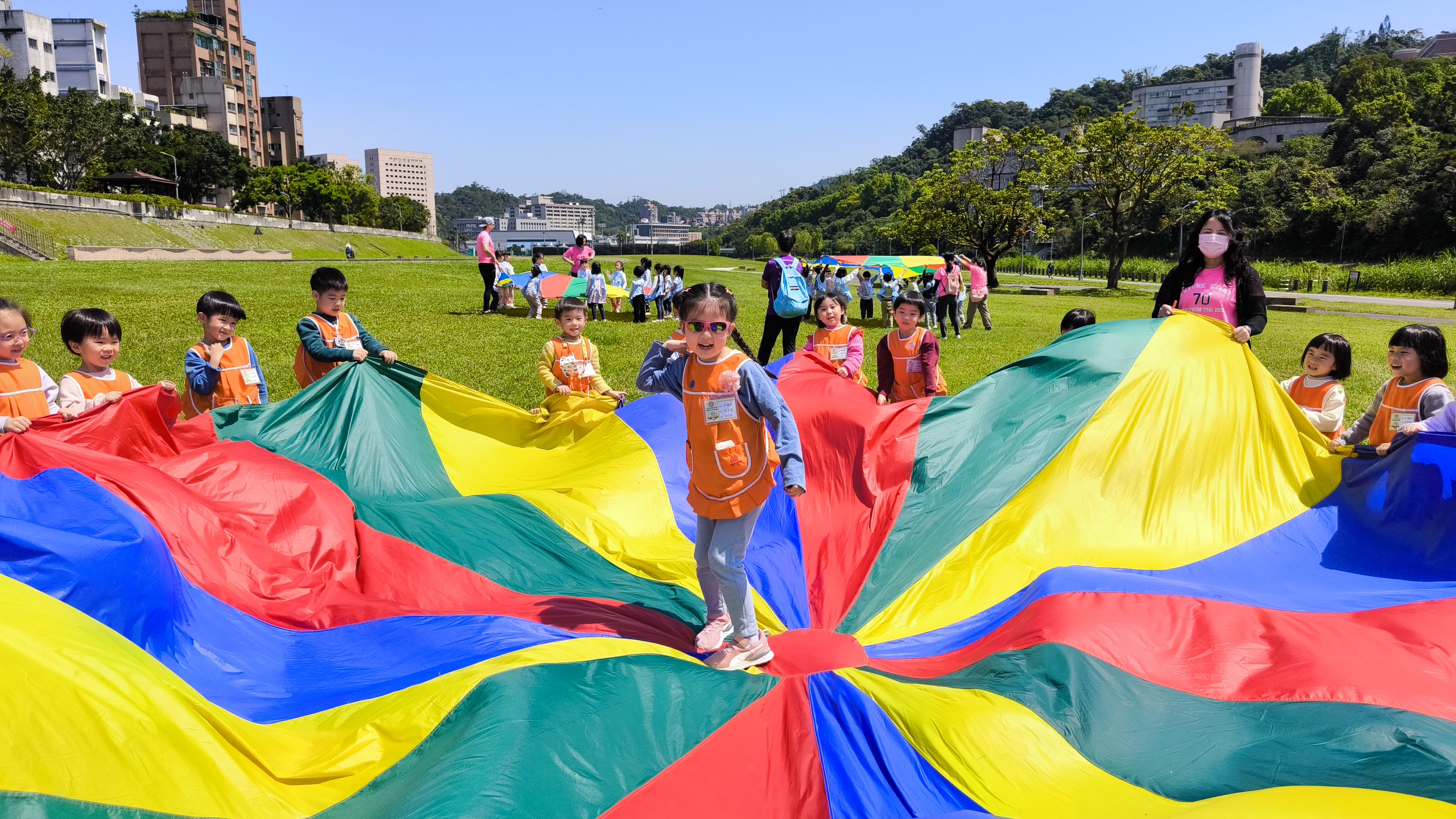 3/20、3/21兩天的天氣晴朗,微風徐徐,大、中、小班的孩子們在老師的帶領下,開心地前往道南河濱公園健行。一路上,孩子們興奮地觀察春天的景色,感受大自然的美好。來到公園後,大家在草地上奔跑嬉戲,有的溜滑梯、有的挑戰攀岩設施,玩得不亦樂乎。歡笑聲此起彼落,孩子們透過遊戲鍛鍊體能,也培養了與同伴合作的精神。這次健行活動,不僅讓孩子們親近自然,更留下了美好的回憶!