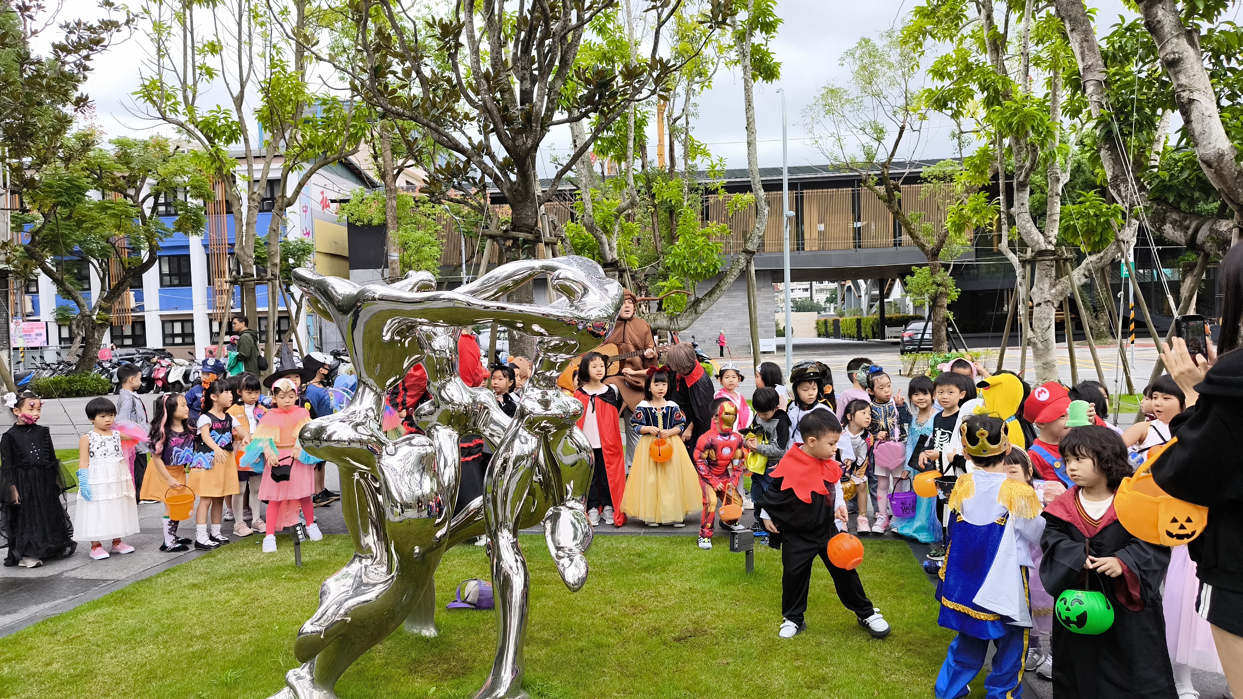 在操場上,孩子們歡唱萬聖節歌曲、載歌載舞,還有精彩的造型走秀,展現滿滿自信與活力。