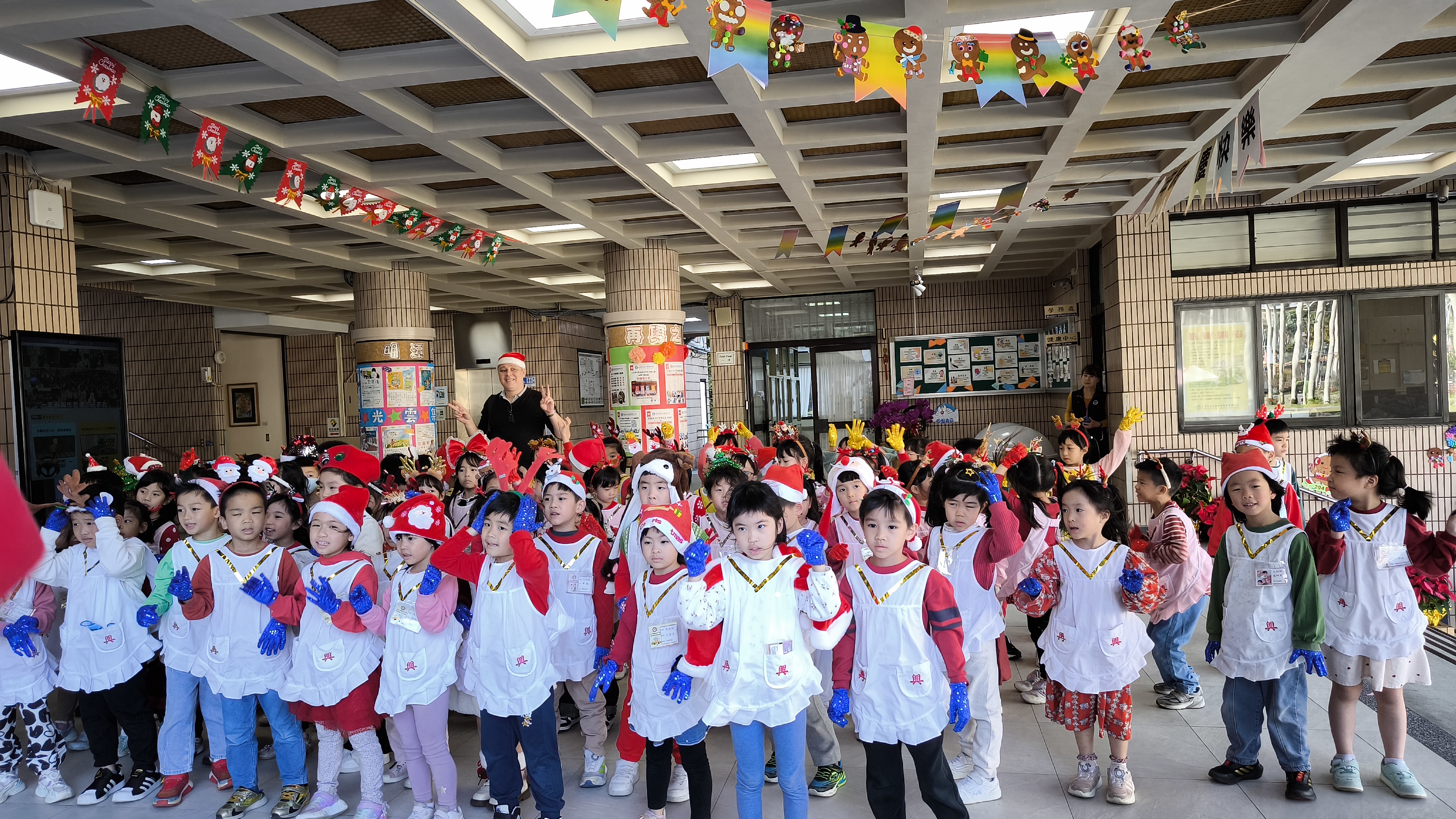 12月24日平安夜,幼兒園舉辦「全校報佳音」活動,由大班組孩子擔任主角。活動中,孩子們化身為小小報佳音天使,依序走訪校園各處,以整齊嘹亮的歌聲演唱聖誕歌曲,向全校師生傳遞平安夜的祝福與喜悅。在溫馨的歌聲中,校園洋溢著濃厚的聖誕氣氛,不僅讓孩子們學習分享與祝福的意義,也為全校師生留下溫暖而美好的節慶回憶。
