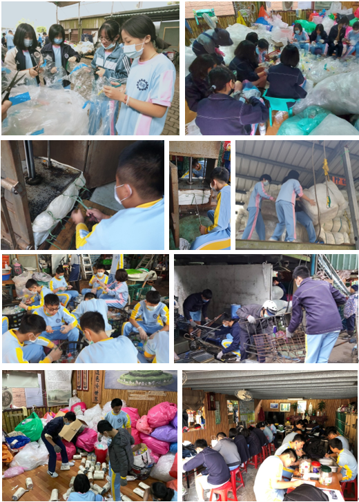 當日,同學準備了一顆熱忱的心來到新店慈濟環保站,在扎實學習「十指分類法則」之後,同學們捲起袖子,開始處理眼前如山一般的回收物,親自體驗資源回收之後的工作內容。最後的心得分享,同學無不表示此工作之辛苦超乎想像,未來必當確實分類,除了愛護地球,也不致增加後端工作者的負擔。