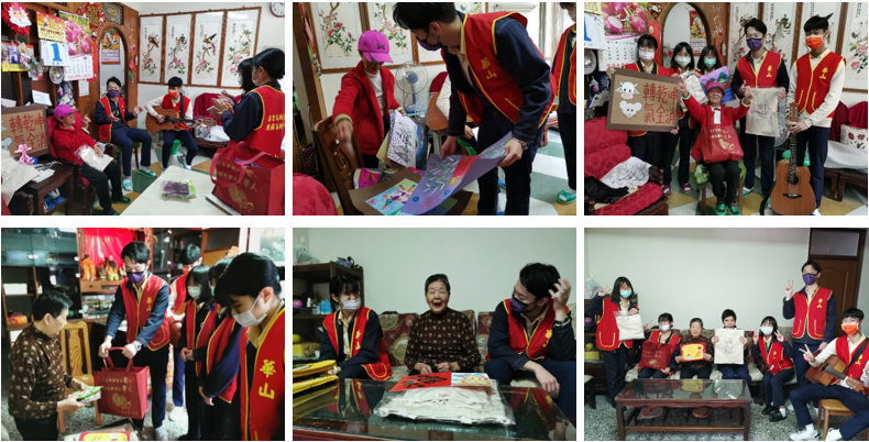 為傳達年節溫暖,特於110年2月1日上午,由學務處許惠君組長帶領班聯會主席廖祖彥、二誠鄧杰修及二仁李亭頤、江郁璟、蔡宜恬等五位同學,與華山基金會文山天使站蔡佳均站長相約攜帶年菜探訪陳採薇及陳花兩位長輩。席間,學生們與長輩們互動熱絡、相談甚歡,更以自彈自唱的方式與奶奶一同歌唱「月亮代表我的心」。在農曆年前,希望此刻的陪伴能讓長輩們感受到再興的溫情,也透過年菜溫暖她的心胃。