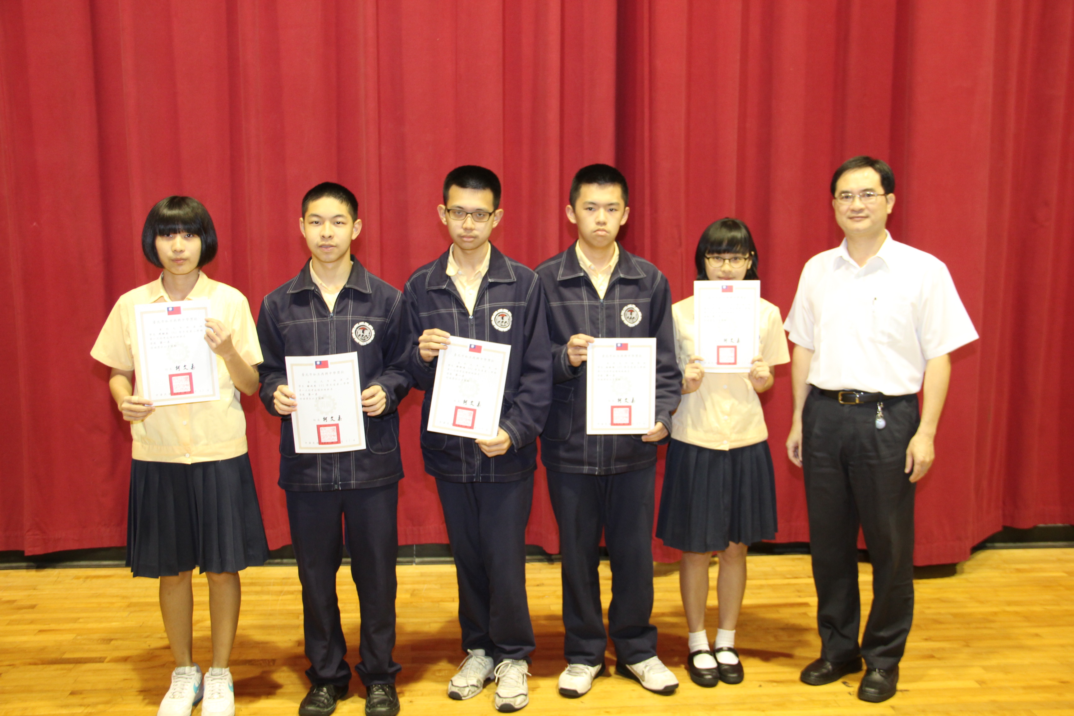 ※本校102學年度第2學期第1次段考,高中部各班第一名: