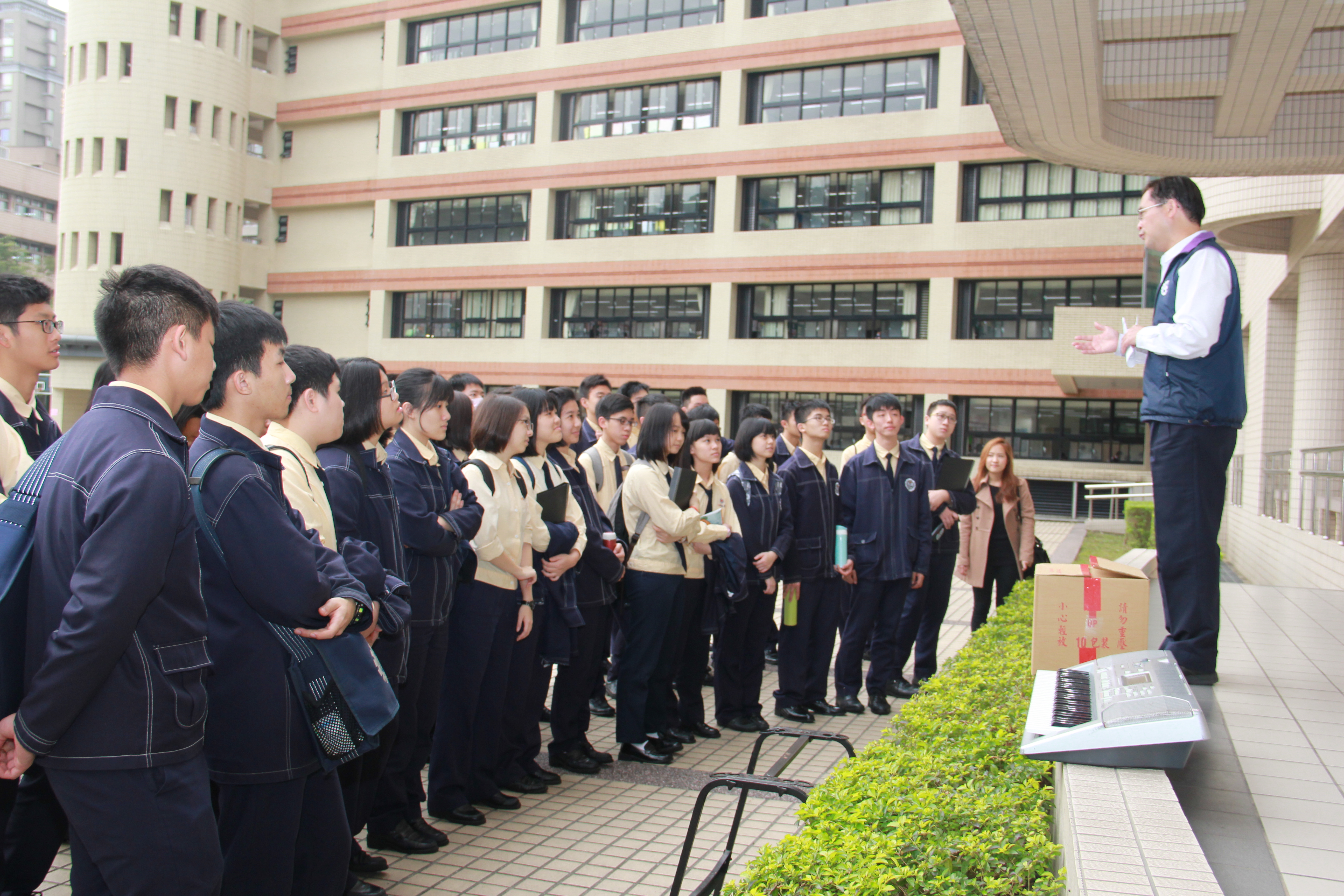 本校合唱團於105年3月8日(二)上午9:00在柯校長的加油勉勵後,前往臺北市天母國中活動中心參加「104學年度全國學生音樂比賽」高中職團體組混聲合唱比賽。