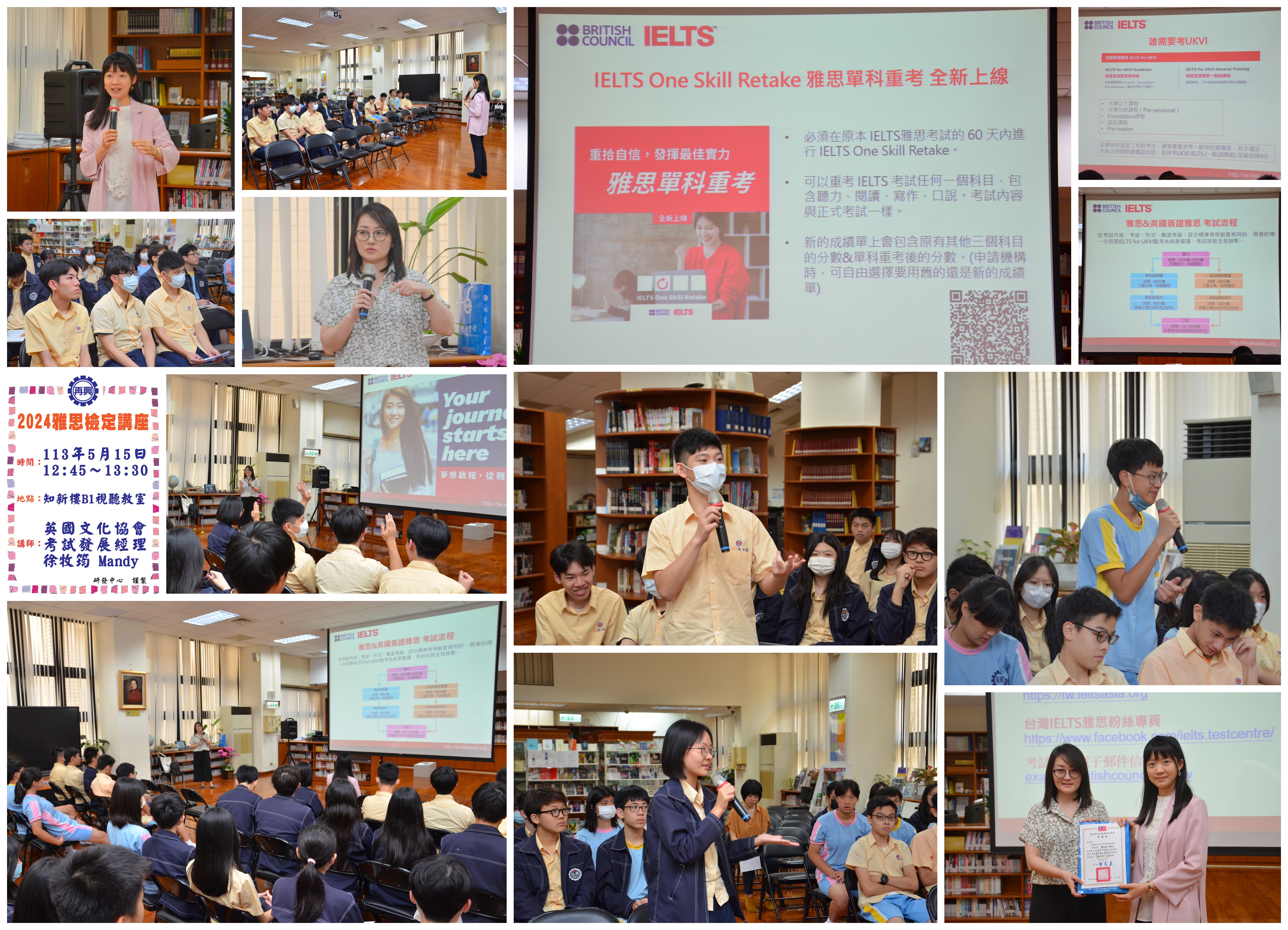 本校於5月15日舉辦「2024雅思檢定講座」,邀請英國文化協會考試發展經理 徐牧筠蒞校主講,協助學生了解雅思檢定與準備方向,本次講座共有31位高中部學生報名參加。雅思檢定測驗為全球最受歡迎的國際英檢之一,其測驗成績於全世界140多個國家,超過11,000所的學校、學術機構與各級政府單位所接受。講師首先介紹雅思考試的種類與測驗方式,讓學生明白其中差異,接著說明考試流程與答題注意事項,最後分享雅思官方考試中心今年推出的新制,包含單科重考服務及IELTS Ready: Premium備考衝刺平台,鼓勵學生善加利用,及早開始準備。講座最後學生們踴躍提問,講師回答了有關雅思與托福檢定成績的級距差異、接受單科重考成績的機構、雅思與多益成績的用途比較等。希望透過本次講座,讓有意願報考英檢的學生對於雅思檢定有更多的認識,並及早著手規劃未來的學習生涯。