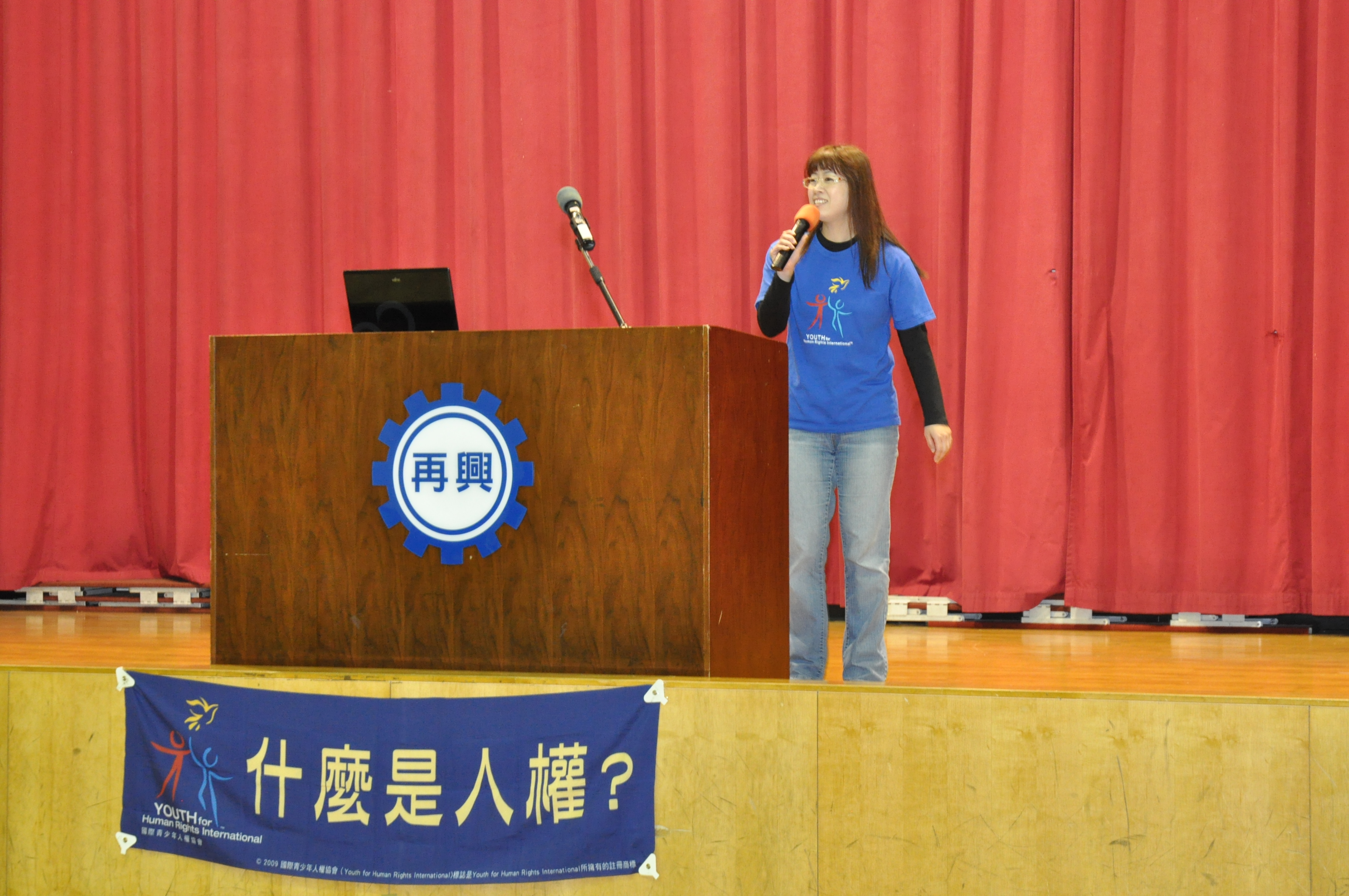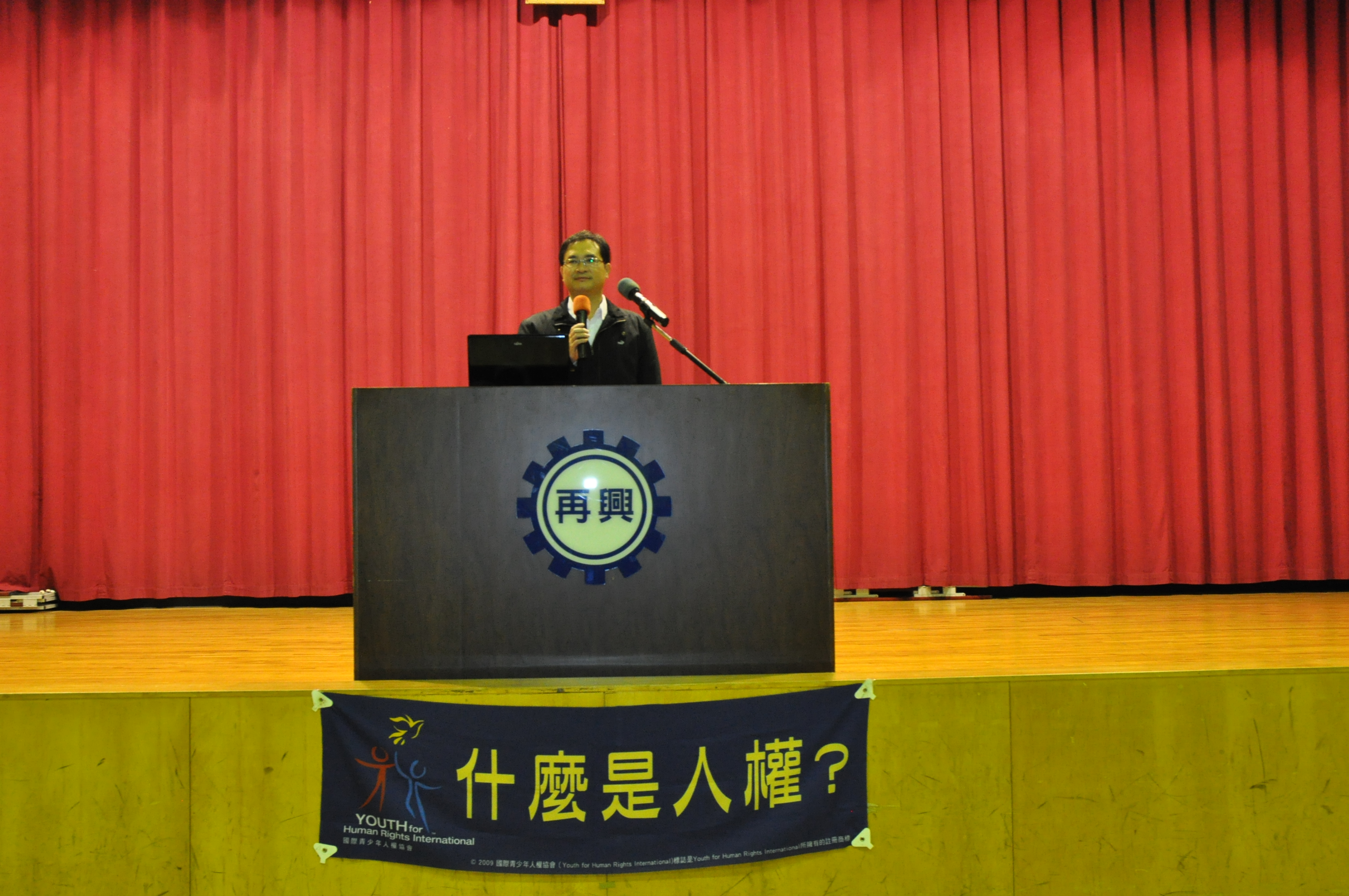 3月5日第四週高中部週會課,學務處特別邀請中華國際人權促進會林佩臻執行祕書蒞臨本校宣導「我有哪些權利!從責任與義務來瞭解人權!」。活動於本校知新樓B3體育館舉行,由柯文柔校長親自主持,本校高中部一、二年級學生及國中部九年級直升班學生參加,講師藉由影音短片與人權條文,深入淺出地讓學生們明白人權教育中最重要的「責任」與「義務」,並熱情與台下學生互動進行有獎徵答活動。