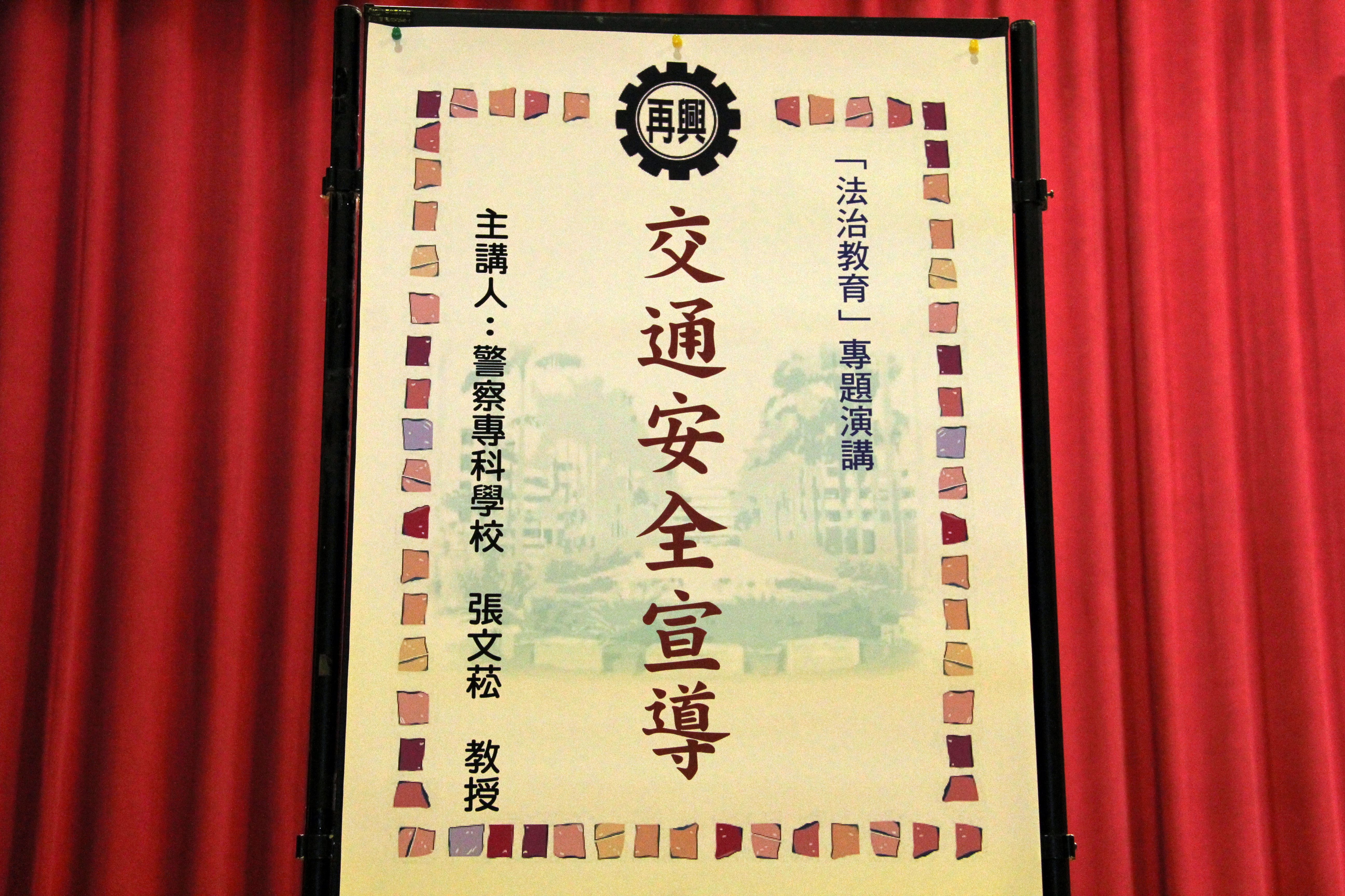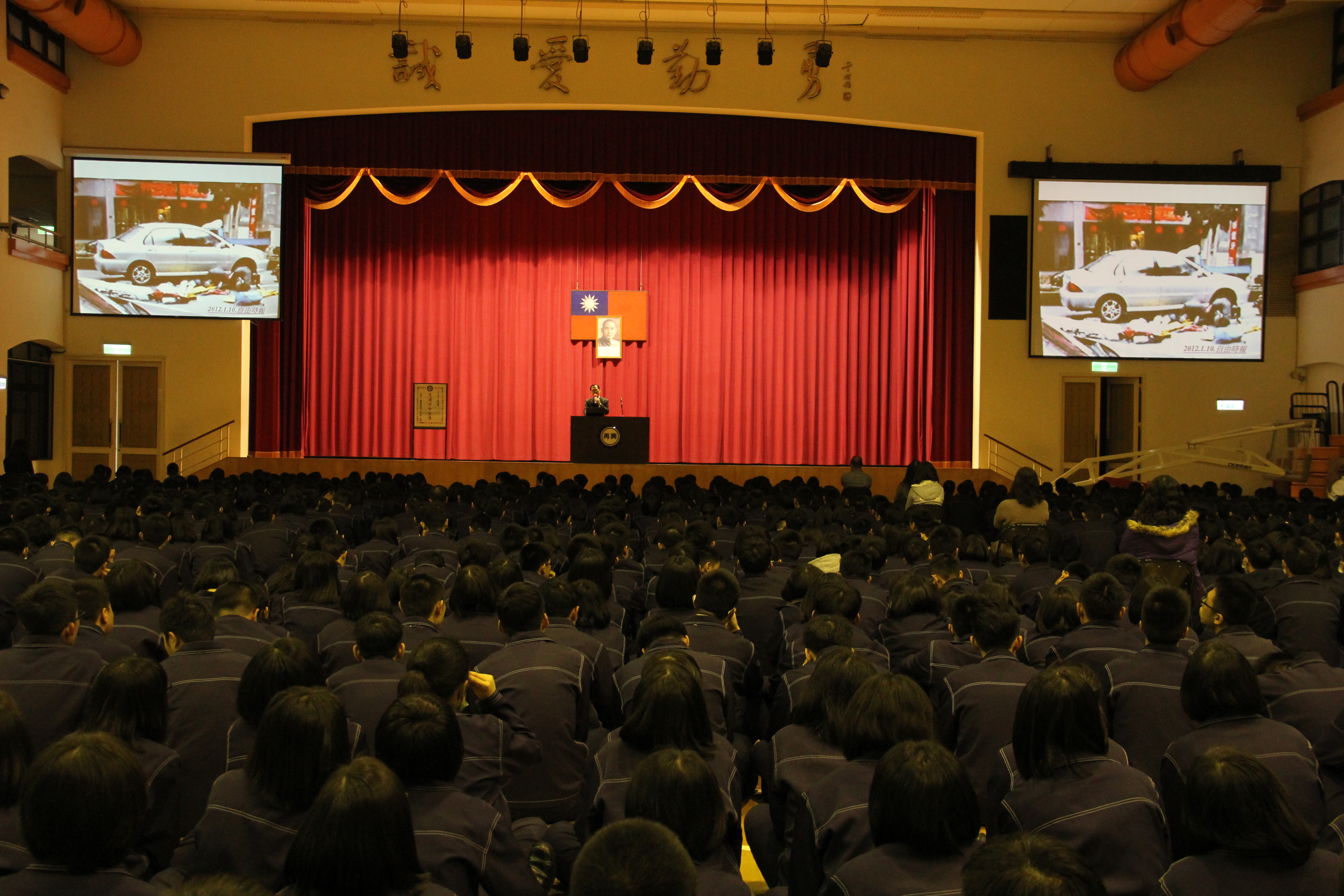 3月23日第6週高中部週會課,特邀請警察專科學校張文菘教授蒞臨本校主講「交通安全」宣導講座。活動於本校知新樓B3體育館舉行,由柯文柔校長親自主持,本校高中部一、二年級及國中部九年級平/忠/仁/義/愛班全體學生參加,張教授藉由各種交通安全法規介紹與案例分享揭開序幕,用輕鬆詼諧幽默的演講風格幫助學生了解道路交通管理處罰條例的修訂歷史沿革,並希望同學們能提醒家人「開車不喝酒、喝酒不開車」。