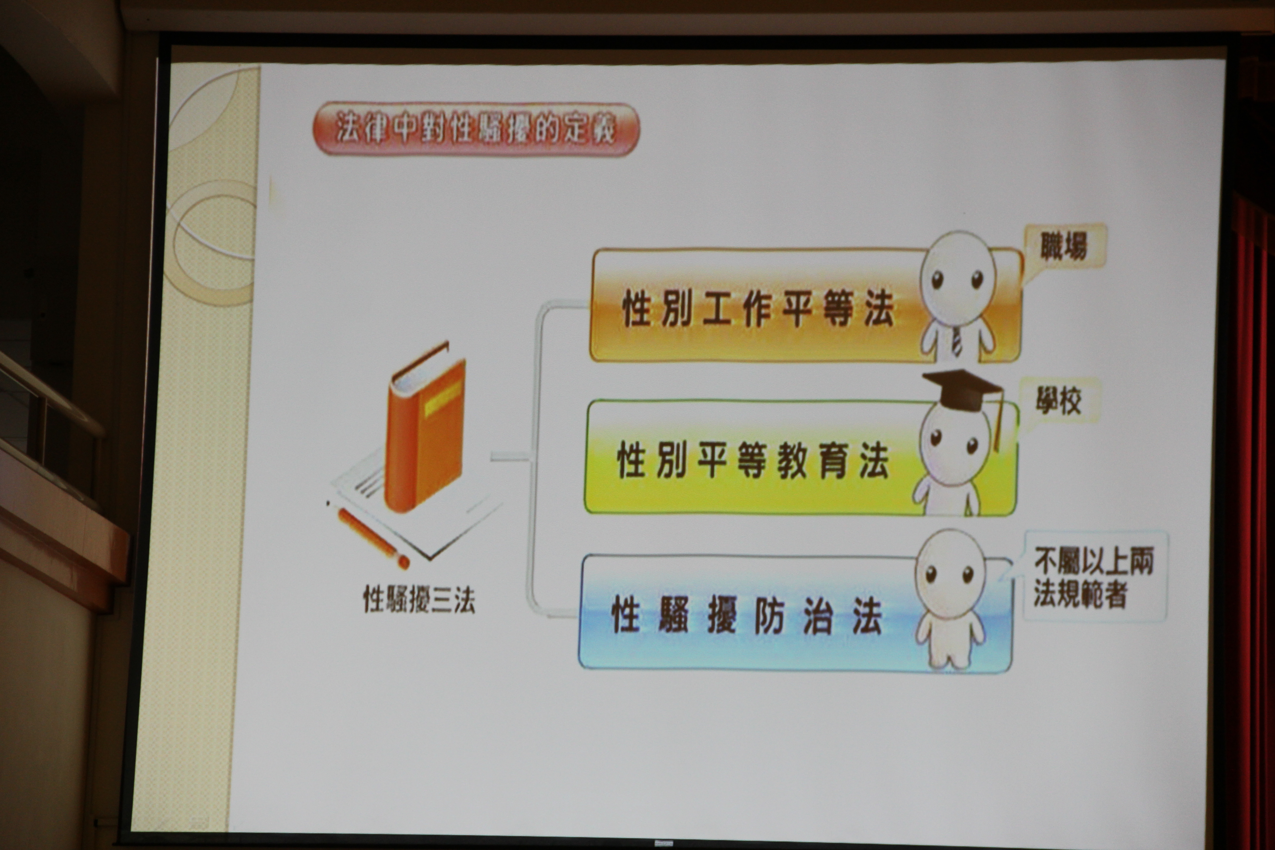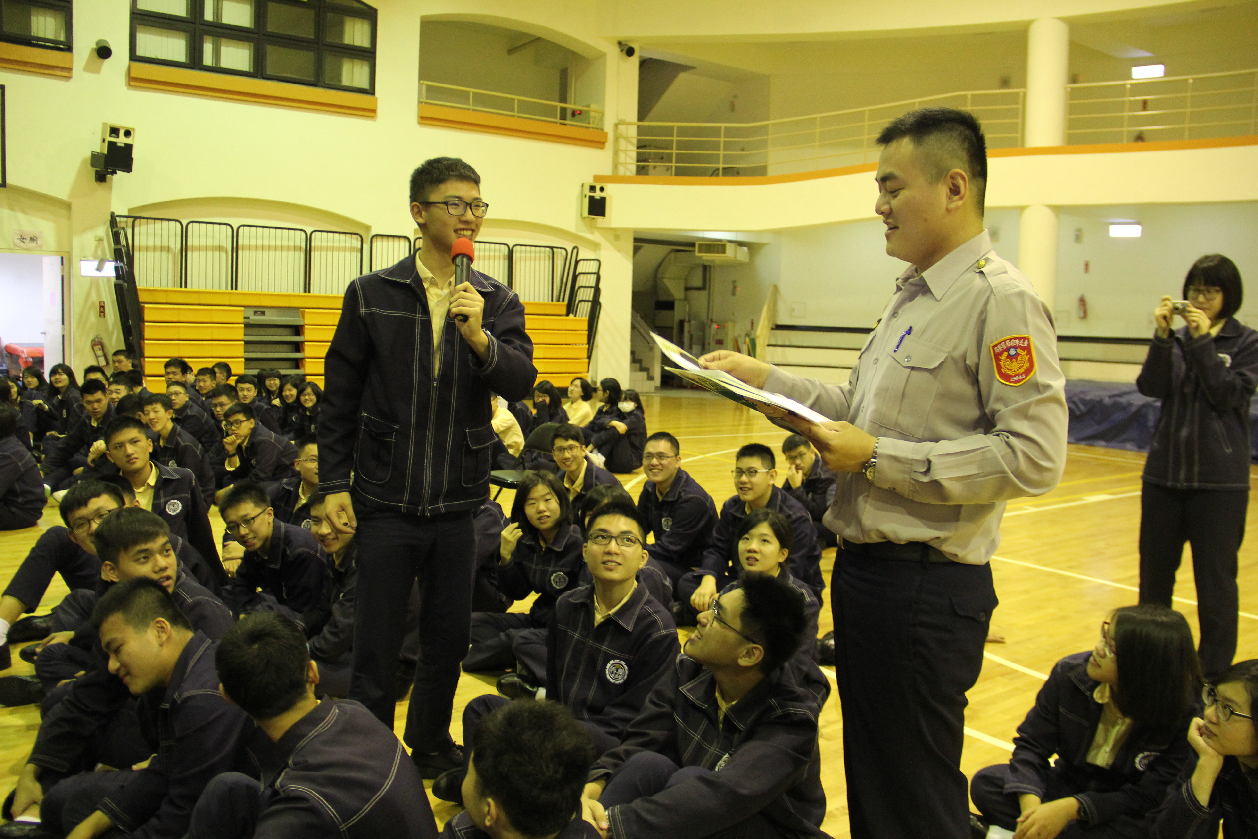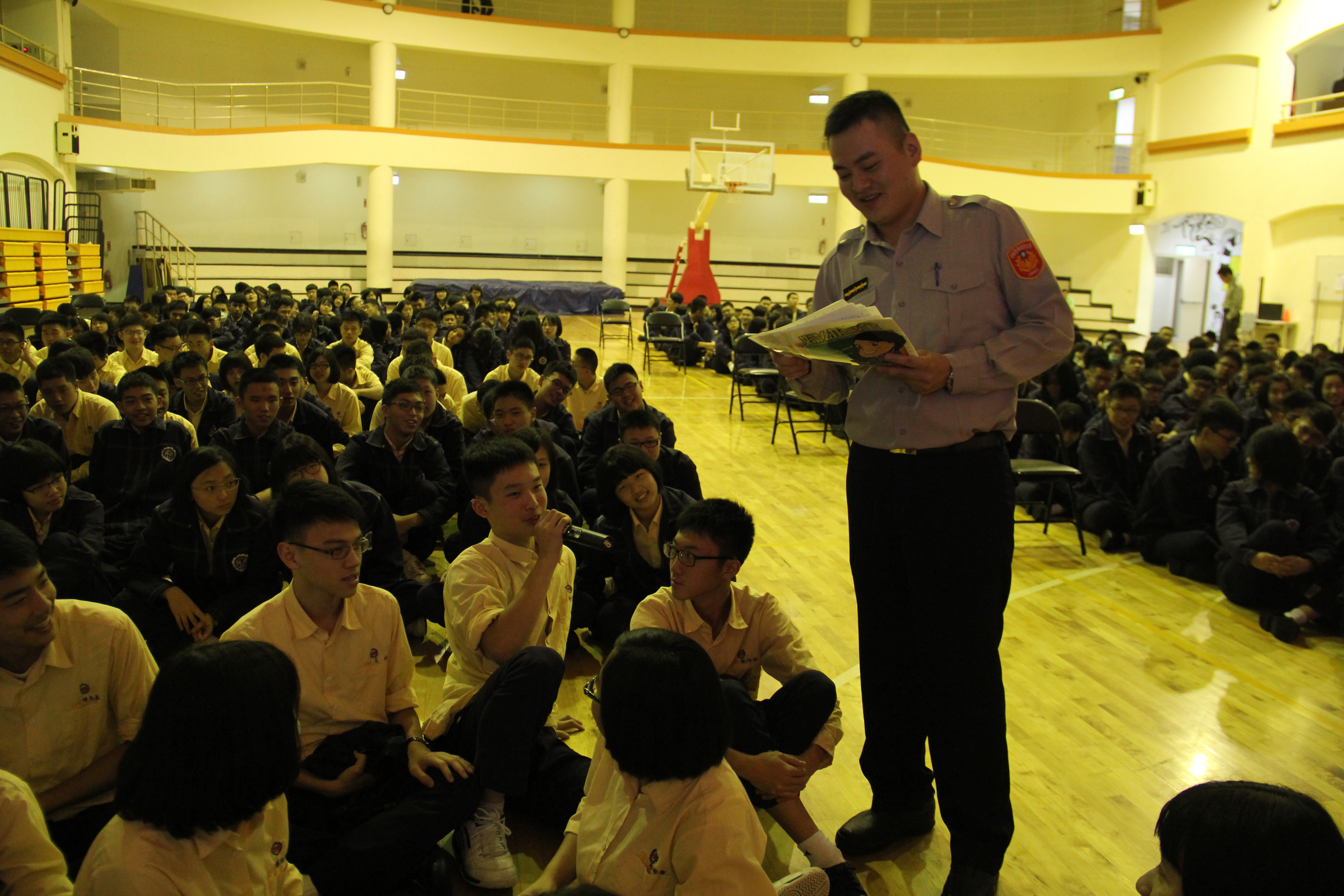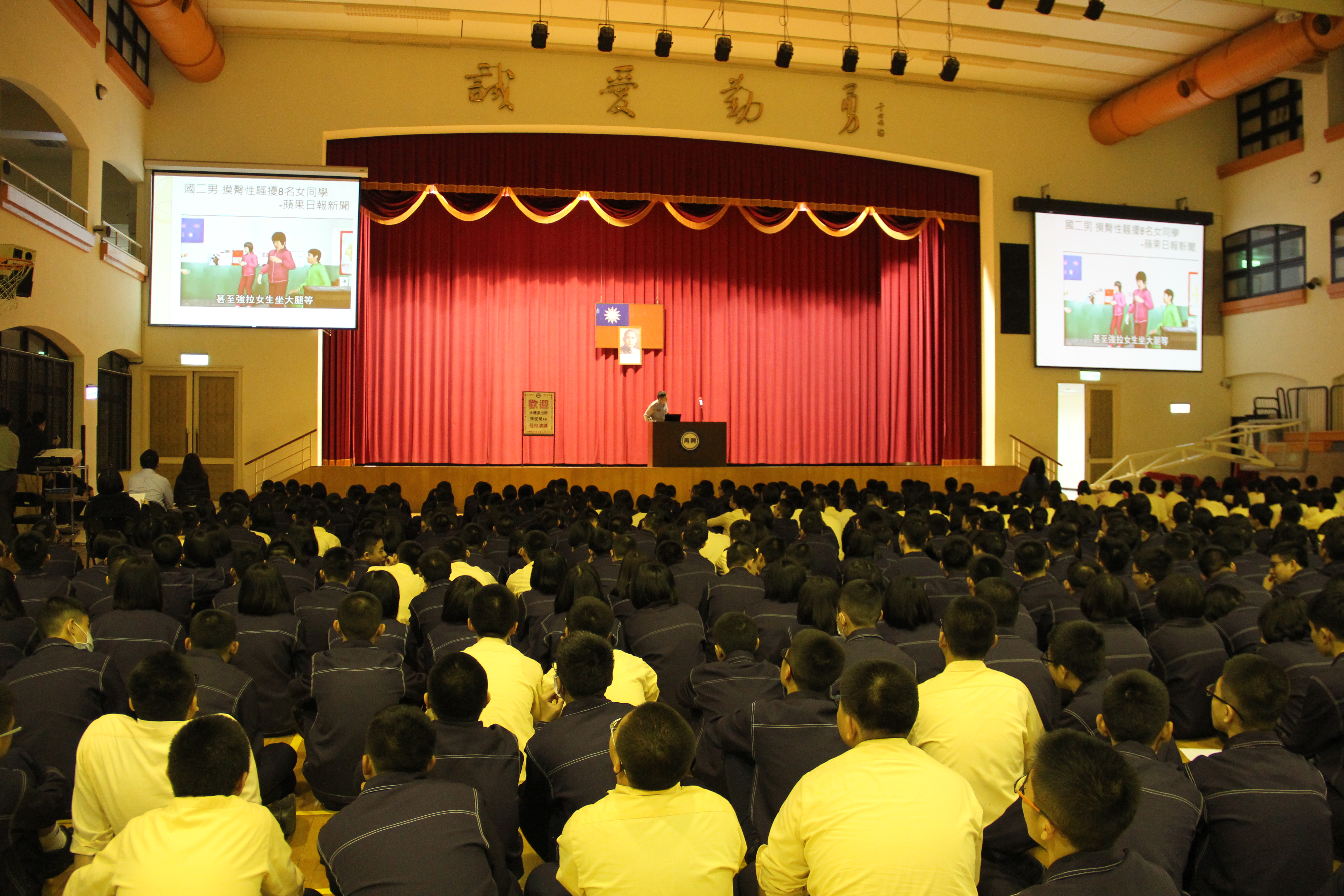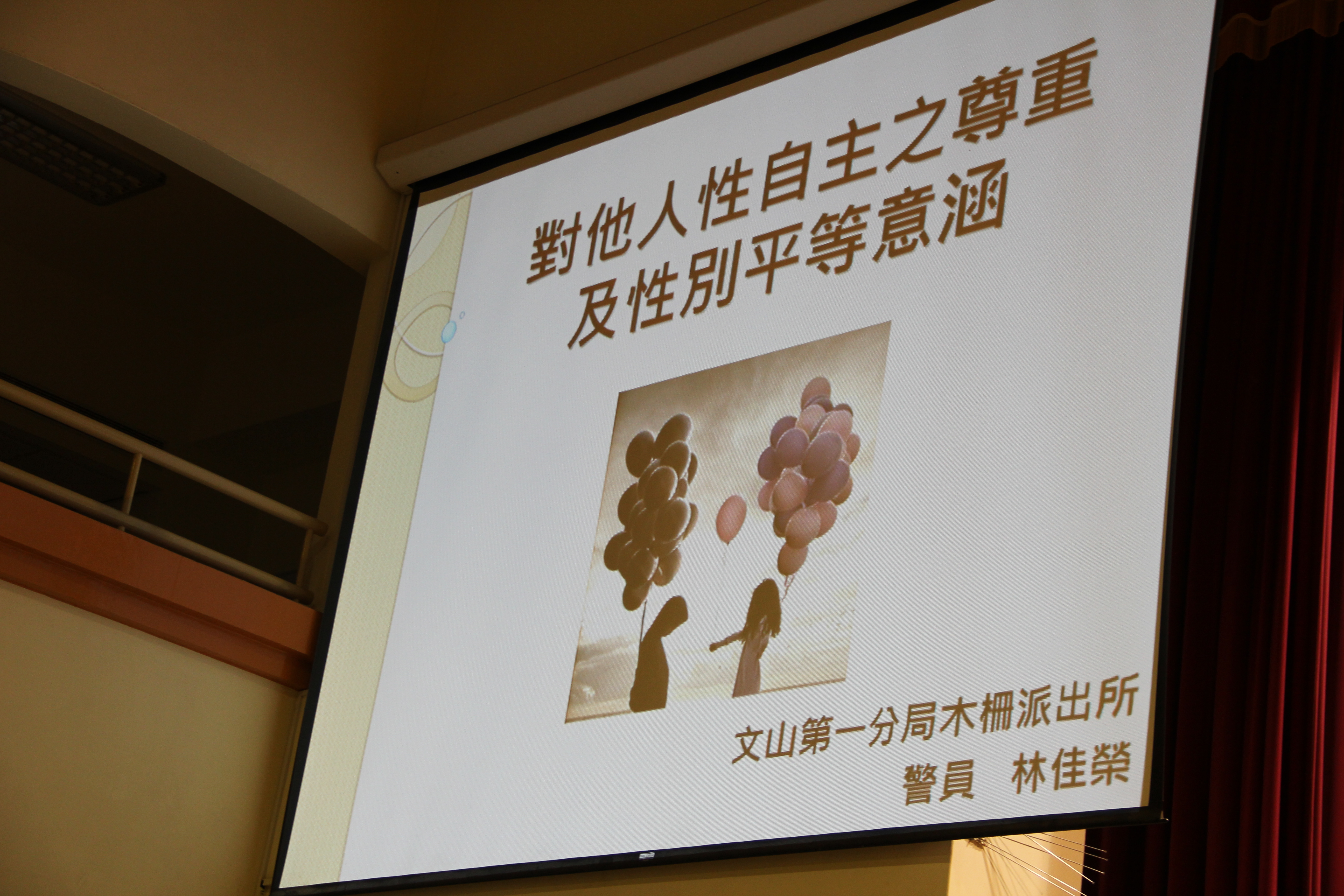 4月13日第九週高中部週會課,教官室特別邀請文山一分局林佳榮社區家防官蒞臨本校進行「性侵害防治教育宣導─對他人性自主之尊重及性別平等意涵」宣導活動。活動於本校知新樓B3體育館舉行,由柯文柔校長親自主持,本校高中部一、二年級學生以及國中部九年級直升班學生參加,林家防官藉由性平條文以及生活案例宣導,深入淺出地讓學生們明白性平法規規範,其中性平事件的發生要件包含:1.被害人的主觀感受、2.一般人的客觀標準、3.事發情境。最後以影片方式分享性騷擾/性侵害樣態說明並提醒同學相關因應之道。