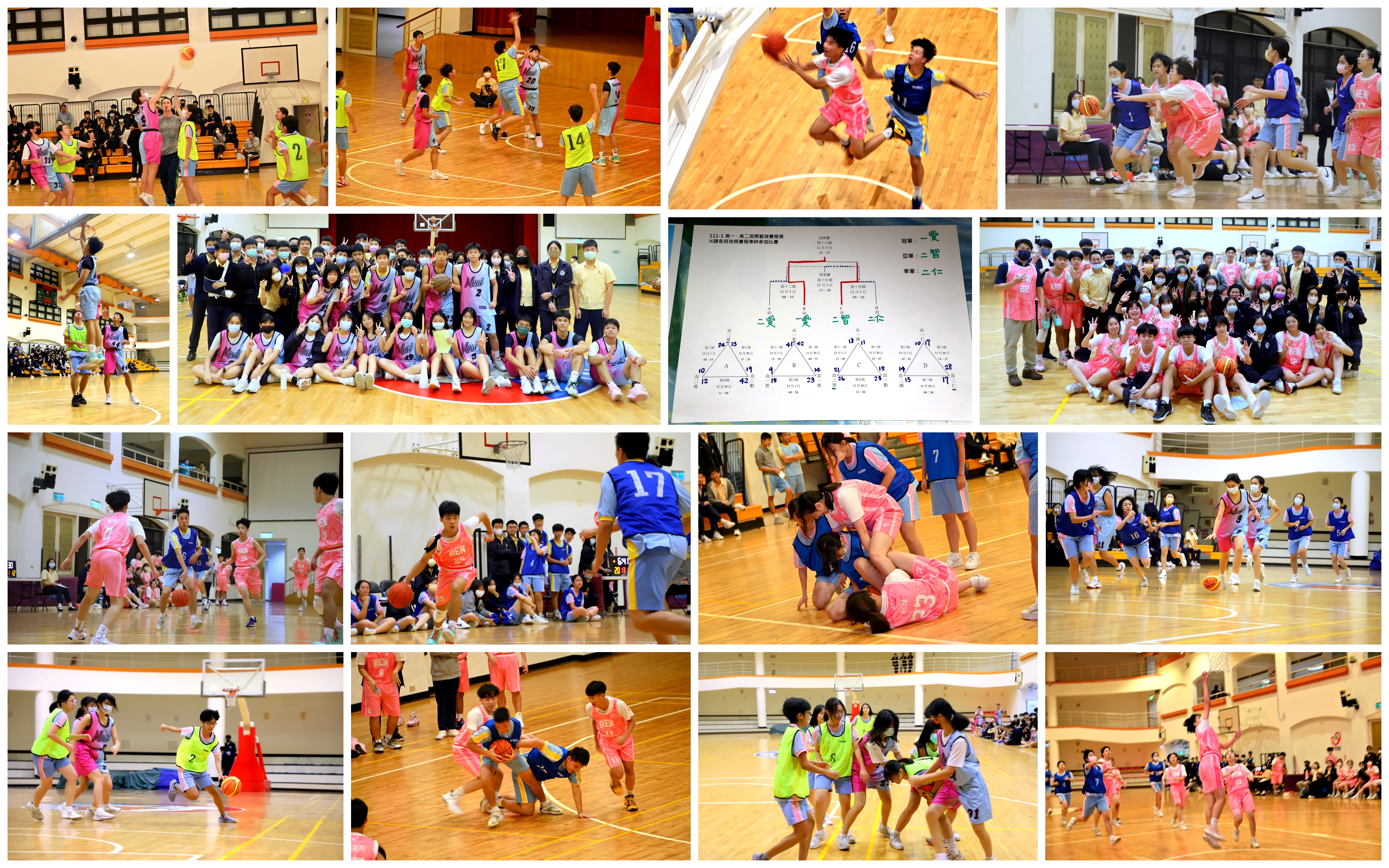 本校學務處體衛組為舒緩同學考試壓力、提昇學習興趣,促進班級團結合作精神,特於第二次期中測驗後辦理高一、二年級班際籃球競賽,成績如下。
