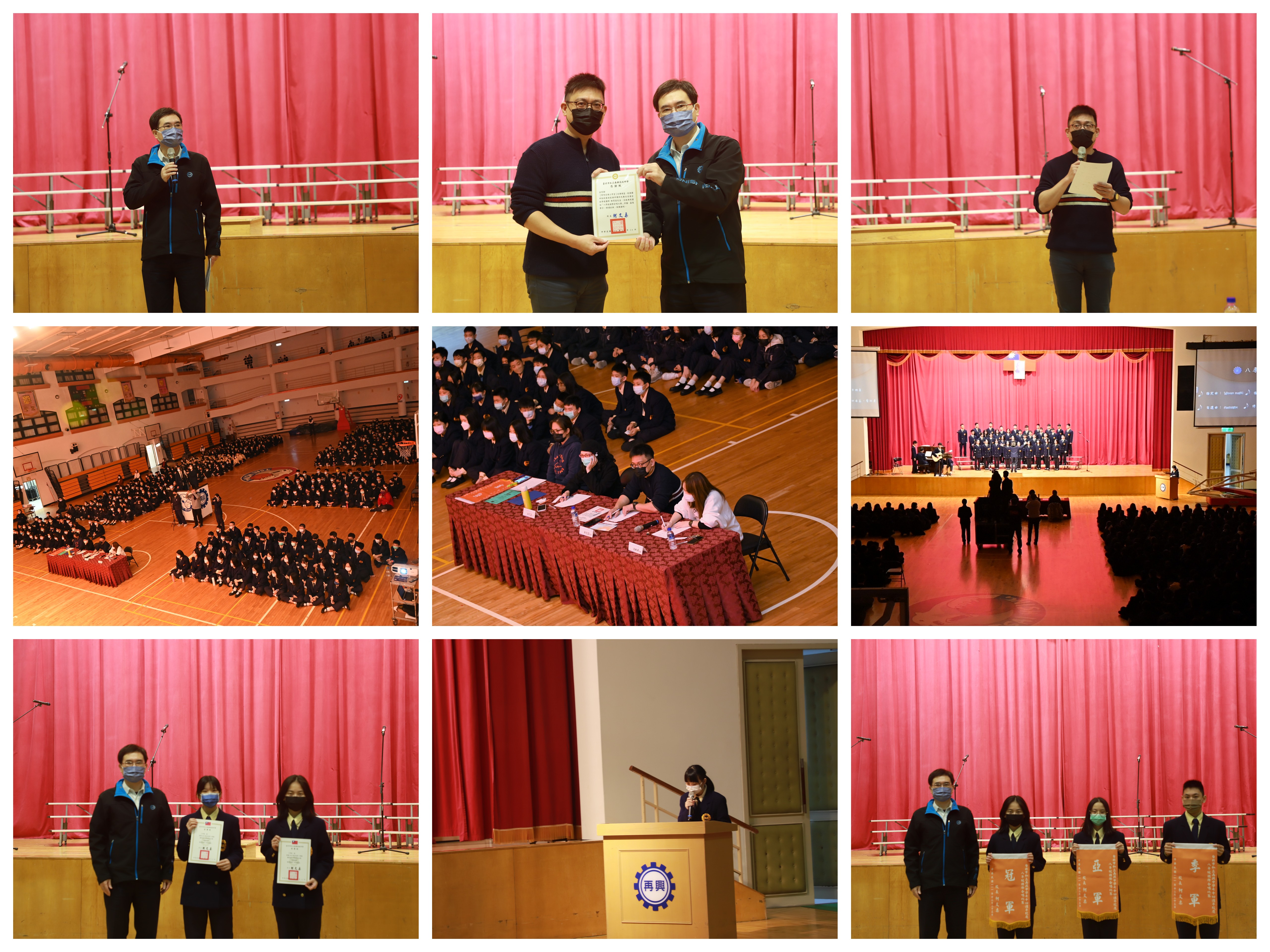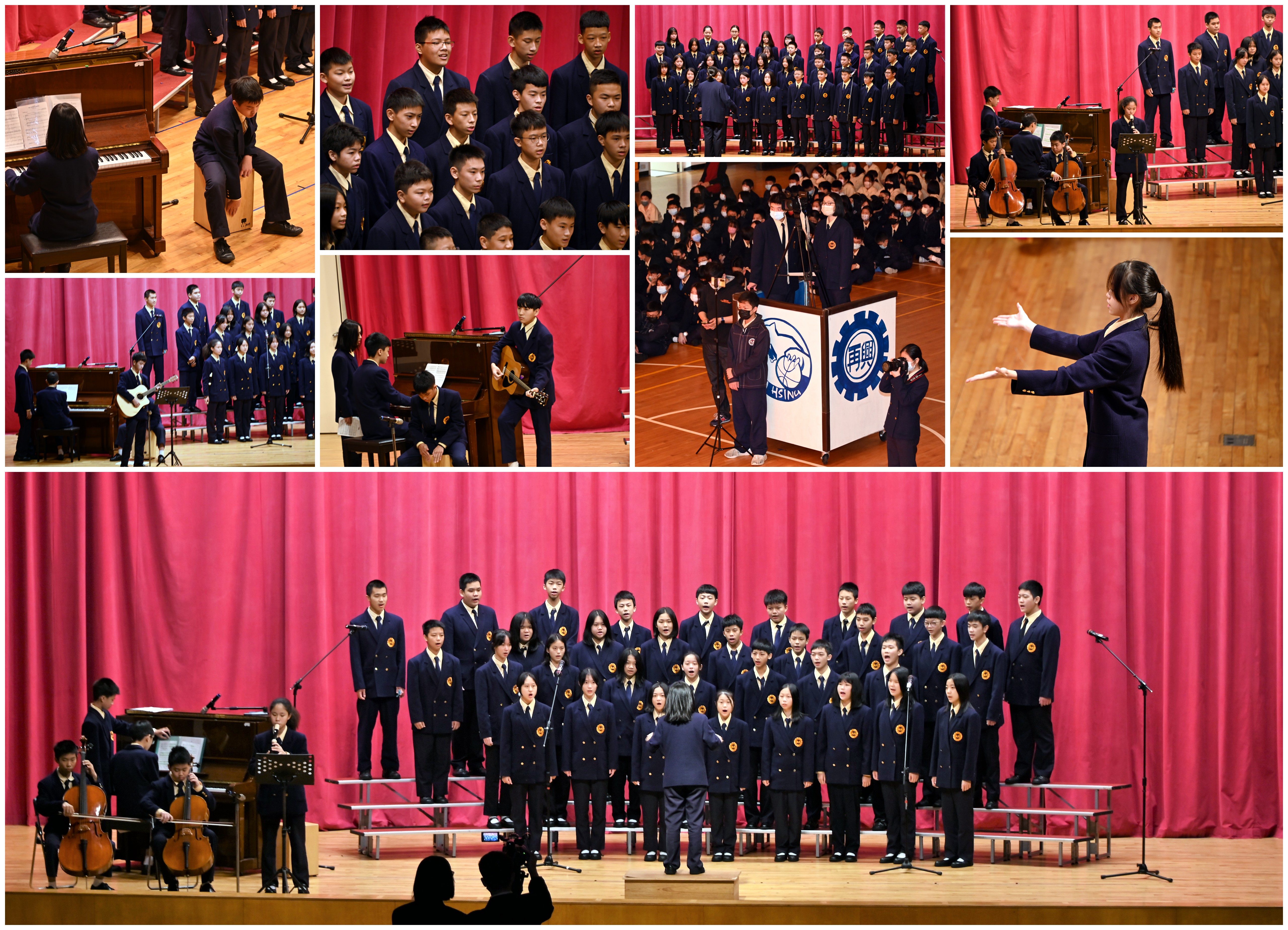 本校111學年度第1學期國中部八年級合唱比賽由學務處主辦,於111年12月14日國中部週會時間假本校知新樓B3體育館舉行。本項活動特別聘請專業合唱音樂教師林育誼老師、向芳誼主任以及劉姵希老師擔任評審。八年級各班紛展平日音樂課練習成果,每班除全體同學上台參加比賽外,指揮及鋼琴伴奏均由各班同學擔任,完全不假他人之手;經激烈競爭後,成績名次如下: