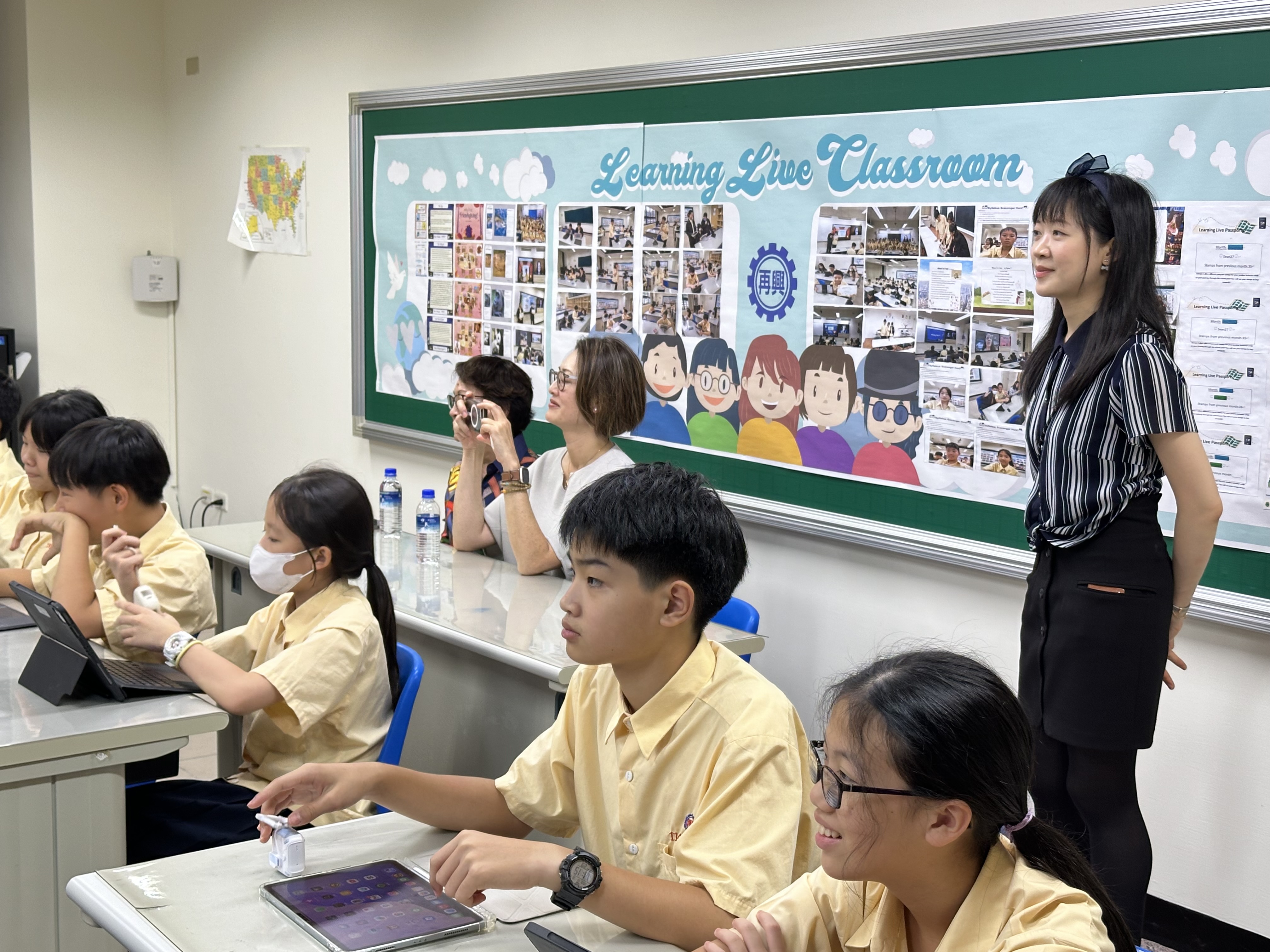 加拿大哥倫比亞國際學院師長蒞臨參訪 114年10月8日上午,加拿大哥倫比亞國際學院Columbia International College(以下簡稱CIC)創辦人Pauline Kan與執行董事Joanie Kan蒞臨再興學校參訪,CIC是加拿大規模最大的私立寄宿高中,成立超過40年,提供優質且多元的中學及大學預修課程,吸引來自100多個國家學生就讀。 當天由張光正董事長帶領再興中小學團隊接待貴賓,與會師長包含張東勇校長、楊珩校長、李秉容主任、楊思萱主任及楊茹婷老師,貴賓抵達後,先到中學圖書館欣賞朱秀榮校長的美麗畫作、戲服等珍藏文物,並觀賞再興學校簡介影片,聆聽課程介紹簡報,對校園環境、特色課程及活動有初步的認識。 接著參觀校園,第一站前往幼兒園,在蘇瑞鴛園長及教師團隊的陪同下,與活潑的孩子們互動,當天適逢國慶遊行,孩子們盛裝打扮,見到訪客都開心比出愛心手勢歡迎。第二站前往小學,到圖書館體驗SEL情緒教育特展,感受溫馨舒適的閱讀空間,走訪小學數位雙語課程,感受語言、文化、科技交織的多元學習氛圍,步行至高爾夫球練習場,感受豔陽下揮桿練習學生們的熱血,最後一站進入中學數位雙語教室,感受國中生使用平板彙整學習檔案、閱讀電子書的認真投入。兩位貴賓在參訪過程與本校師長相談甚歡,對再興的課程與學生讚許有加,雙方不僅對兩校有更多認識,也期盼未來能有更深度交流的機會。