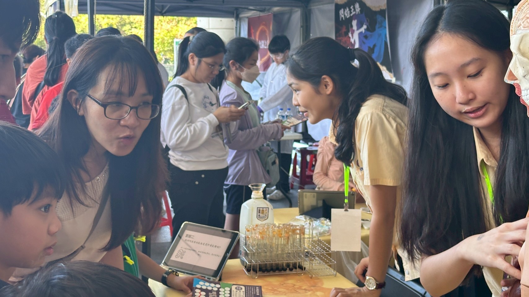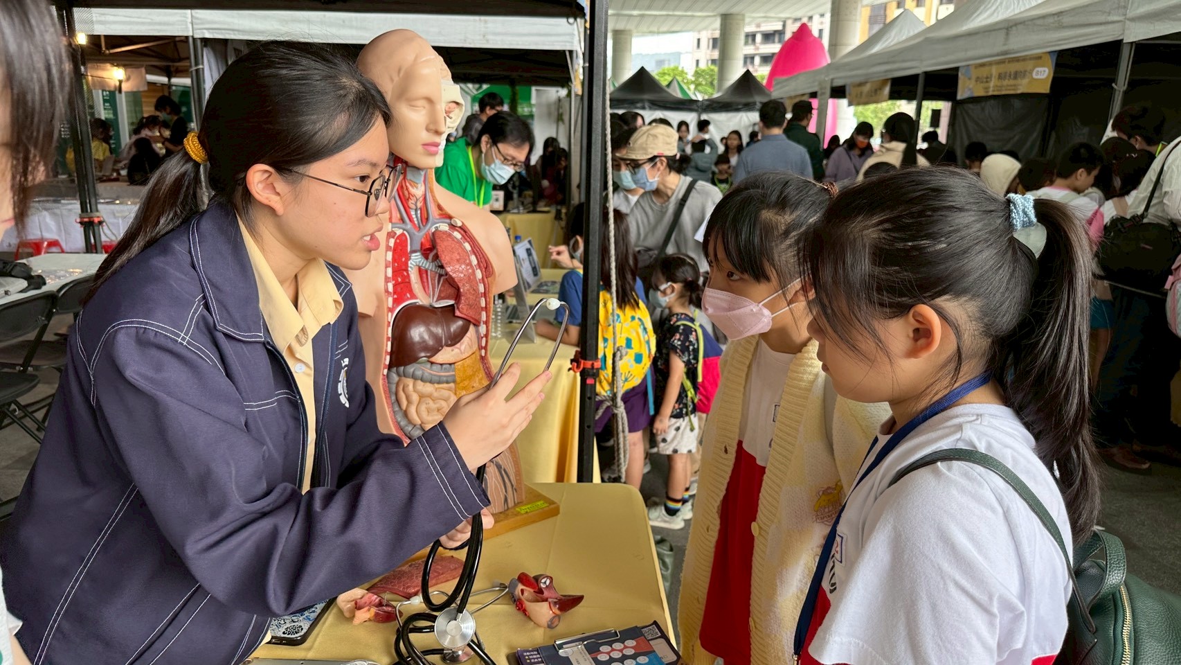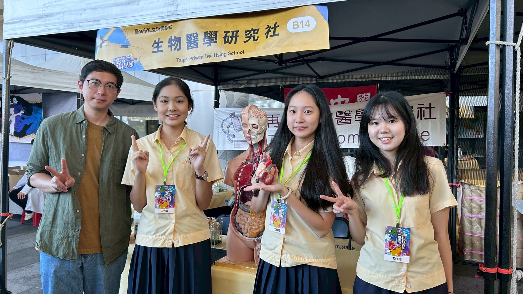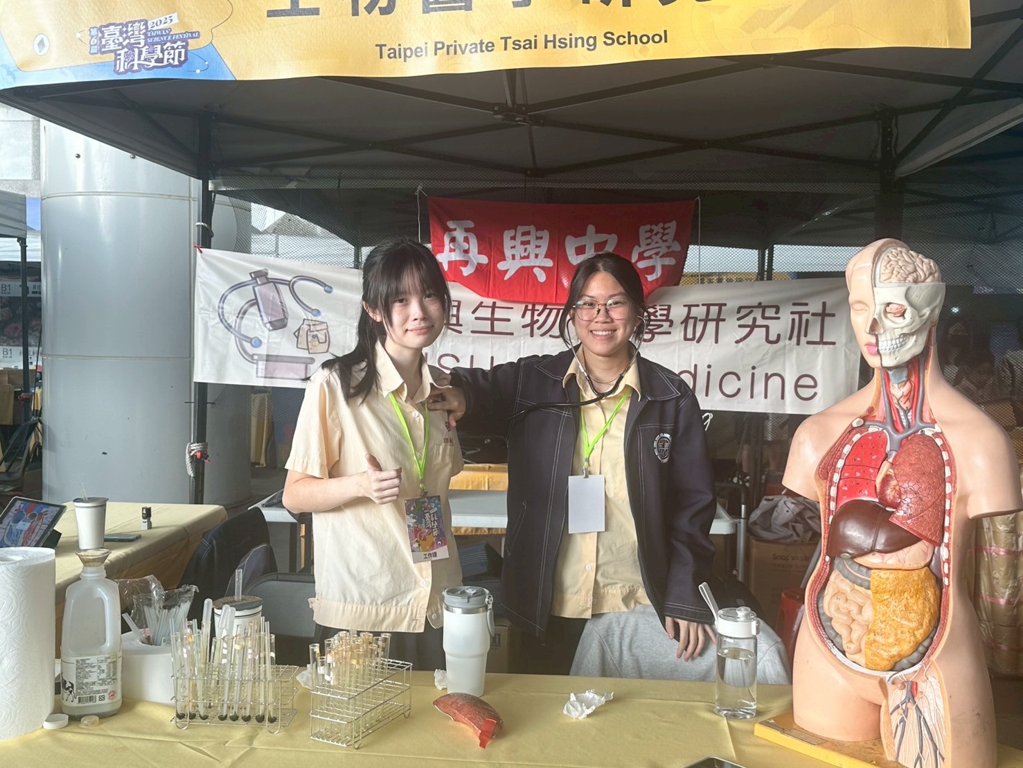 本校生物醫學研究社參與了一年一度於科學教育館舉辦的「科學節」,並在會場設攤,向從幼稚園到高中的學生介紹有趣的生物與醫學知識。生醫社這次設計了三個關卡:首先是「認識器官」,讓孩子們利用人體模型拼出身體構造,並了解各器官的功能。第二關介紹心臟的構造與重要性,透過聽心音與吹氣進酸鹼指示劑兩個小實驗,讓孩子實際感受瓣膜的作用與氣體在體內交換的概念。第三關是「葉片拓印」,在動手創作中觀察植物的細節。 整個活動以操作體驗為核心,希望孩子們在玩樂中培養對生物醫學的興趣。同時,負責攤位的同學們也在與年紀更小的參與者互動時,學習到溝通技巧、同理心與臨場反應能力,為活動畫下圓滿句點。 活動相片連結