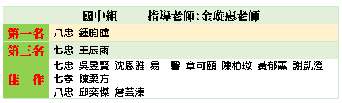 暨 國中個人組 第一名 第三名