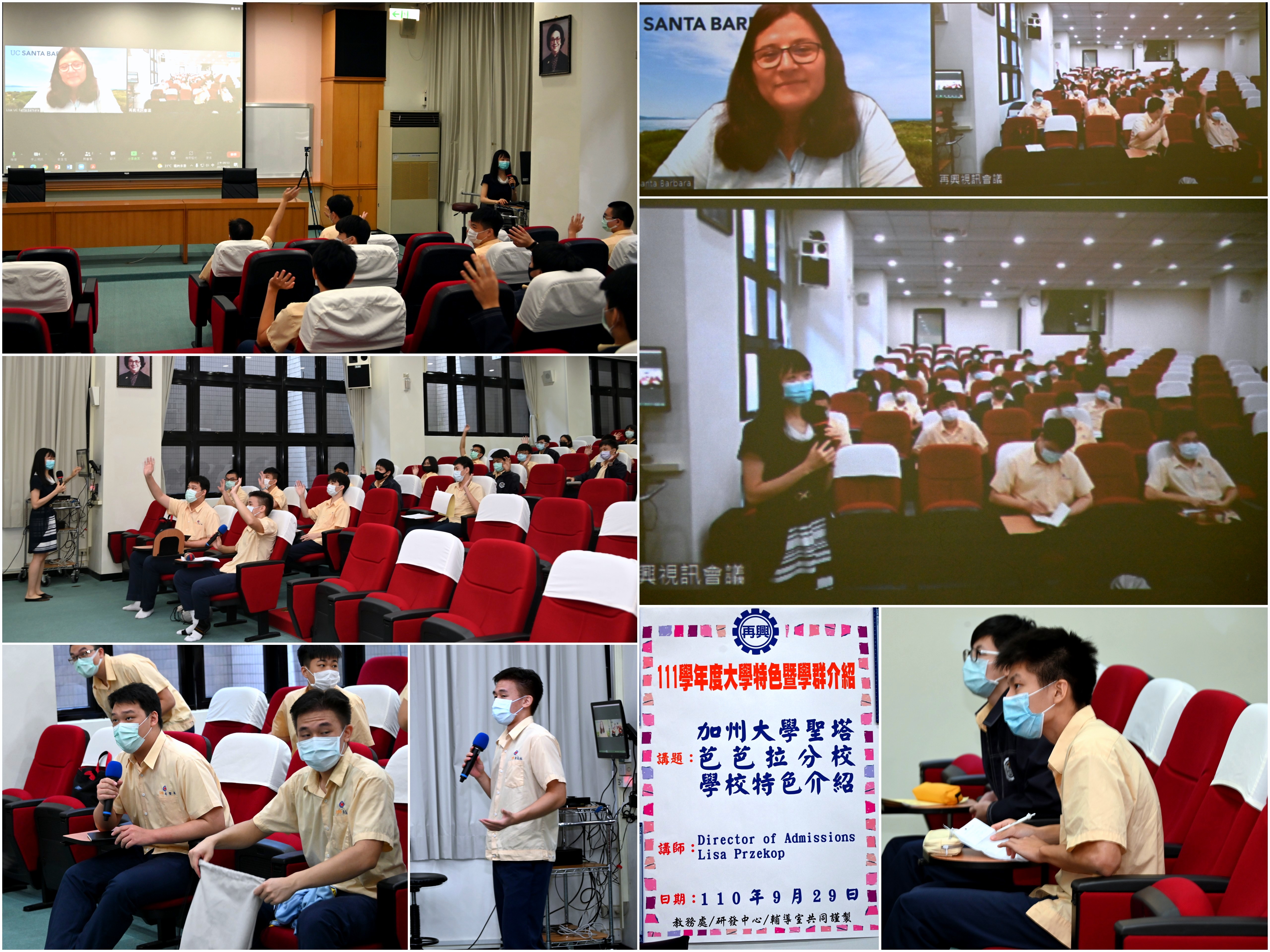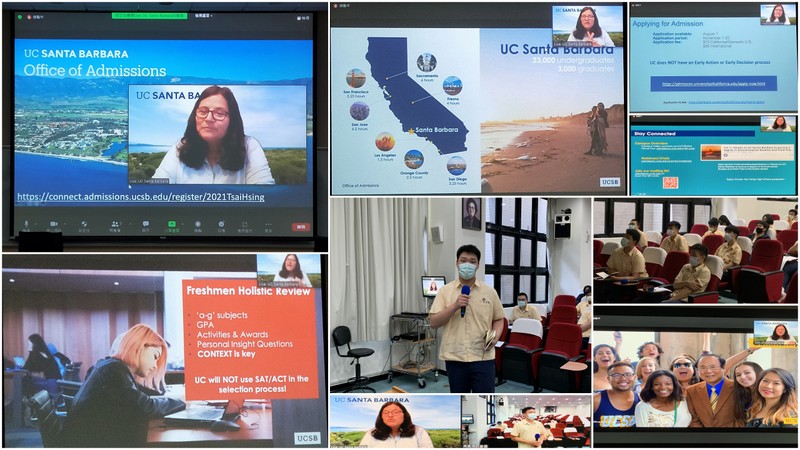 本校於2021年9月29日辦理加州大學聖塔芭芭拉分校留學座談會。因新冠肺炎疫情影響,座談會採線上進行,由招生處主任Lisa Przekop介紹學校概況與申請過程,並回應同學的提問。