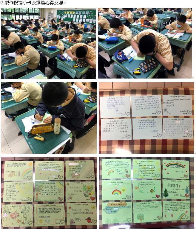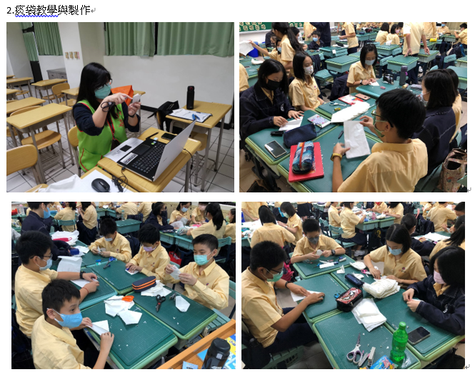 創世基金會提供植物人安養照護,由專業護理人員全天候輪班照顧,包含更換褥墊、沐浴及飲食;其中,每隔2小時為院民翻身一次,進行叩背拍痰,需消耗大量痰袋。經由陳專員的教學後,學生們動手為院民們製作痰袋。之後,以小組方式至校園各角落拍攝歌唱、樂器、廣播劇、朗讀故事、笑話分享…等影音,提供給院民聽覺上的刺激。最後,孩子們靜下心製作祝福小卡,為創世志工、院民或院民家屬給予支持與鼓勵。