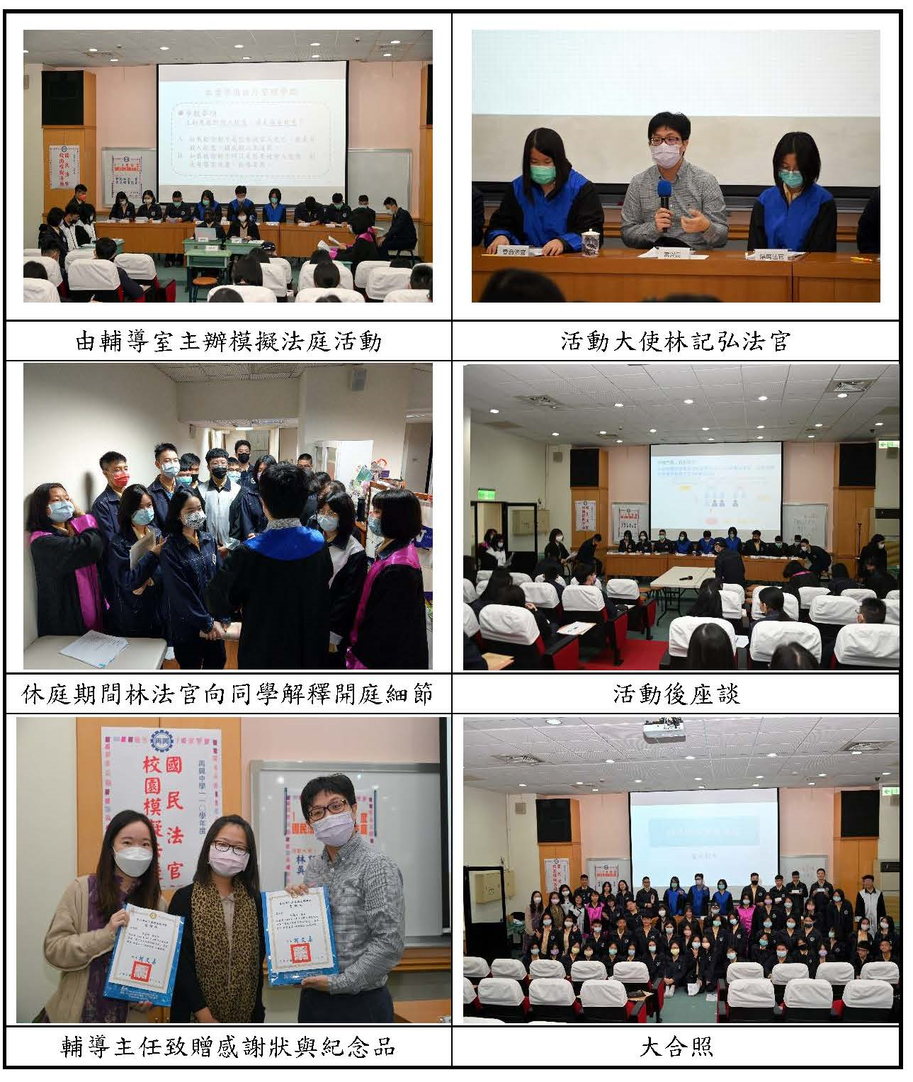 邀請到台北地方法院的林記弘法官與吳芷嫺書記官蒞臨指導,帶領由高中二年級社會
