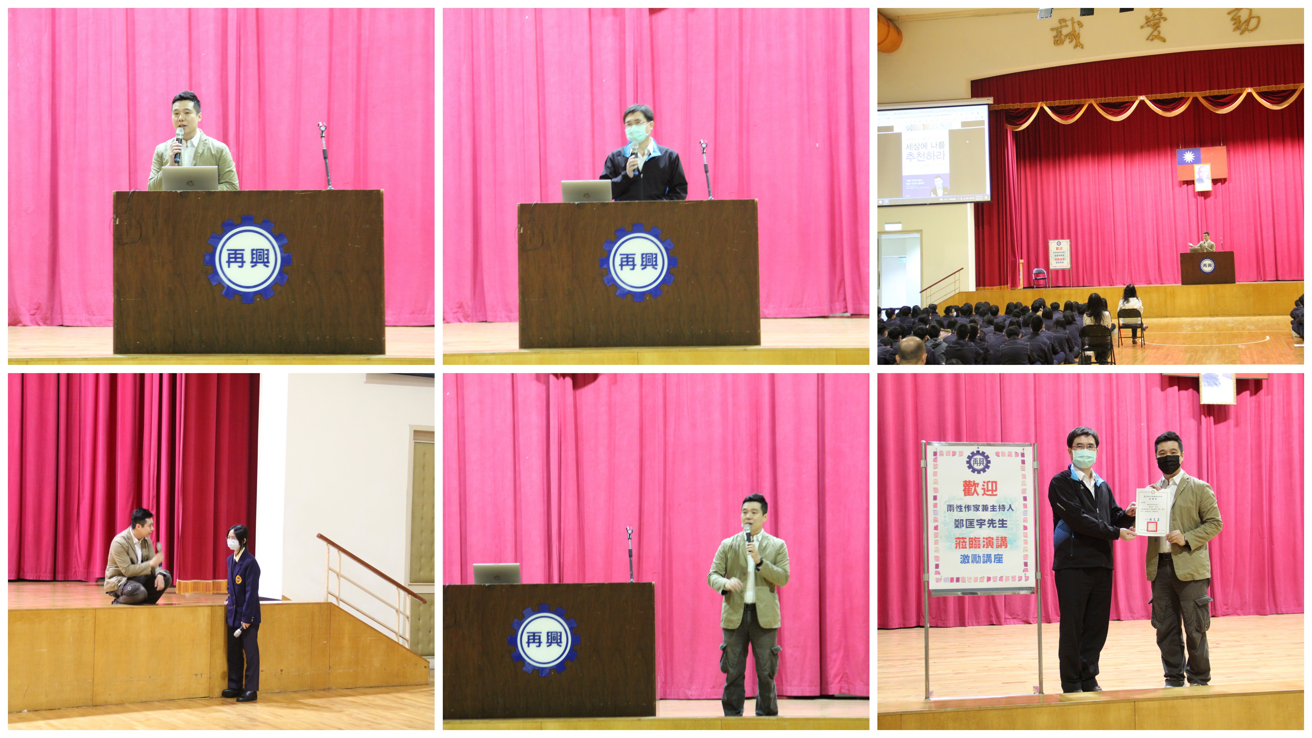 本次週會邀請知名作家同時也是主持人的鄭匡宇先生蒞校進行週會講座,首先講師以自身學習經驗分享給同學並建議可以從參與活動、參加比賽、學好外語與強化口才四個面向去學習,針對不足的地方,用有效的方式去彌補,在有興趣的領域,去發展個人特性,專業能力,最後期許同學能利用資源,創造出對社會更大的努力與貢獻。