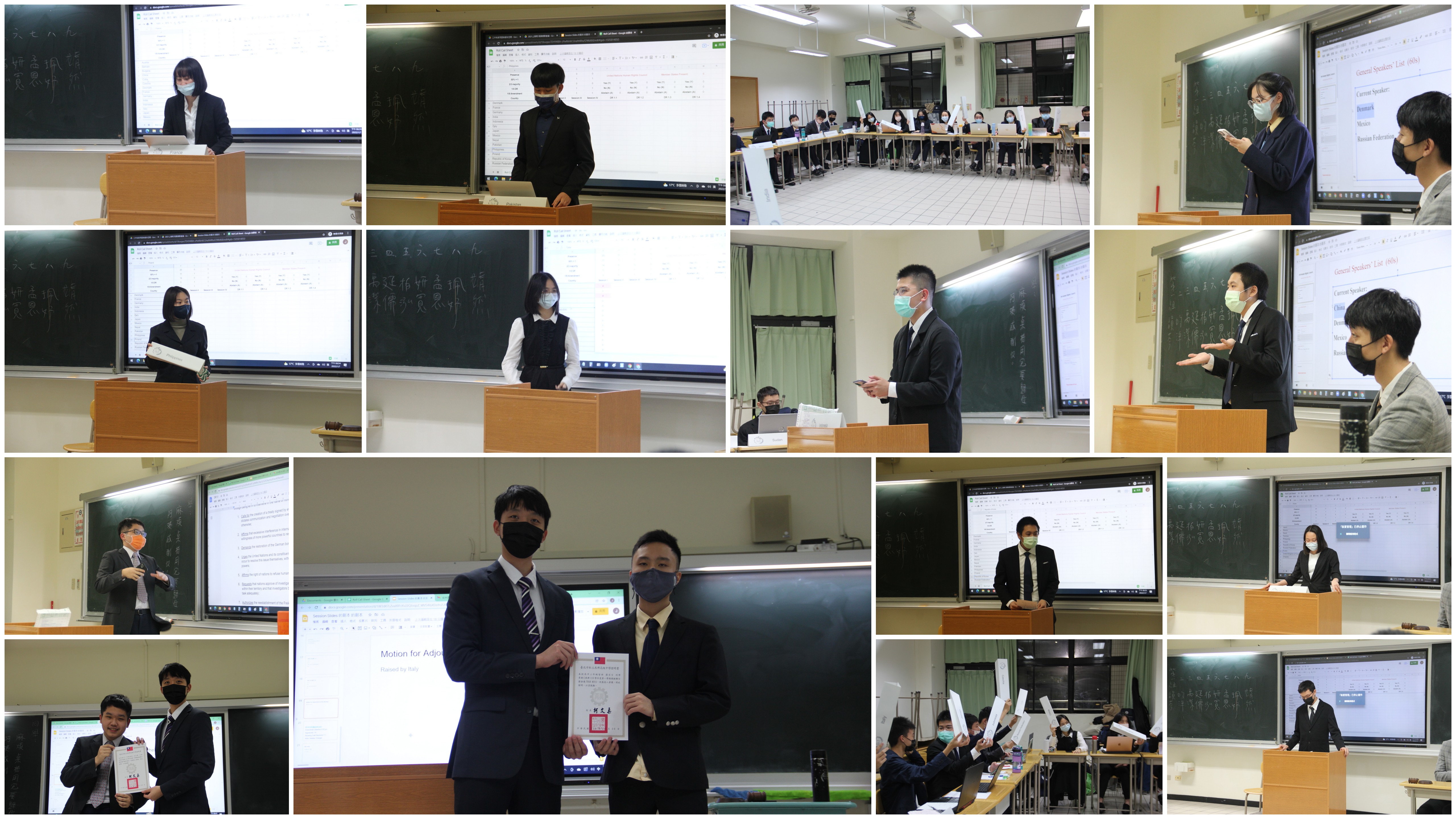 在兩天共四個期程的會議中,學生勇於運用課程中所習得的國際法與知識去表達所屬的國家立場,並思索解決方案。講師鼓勵同學們利用課餘時間參與校外會議,汲取經驗、充實自己。