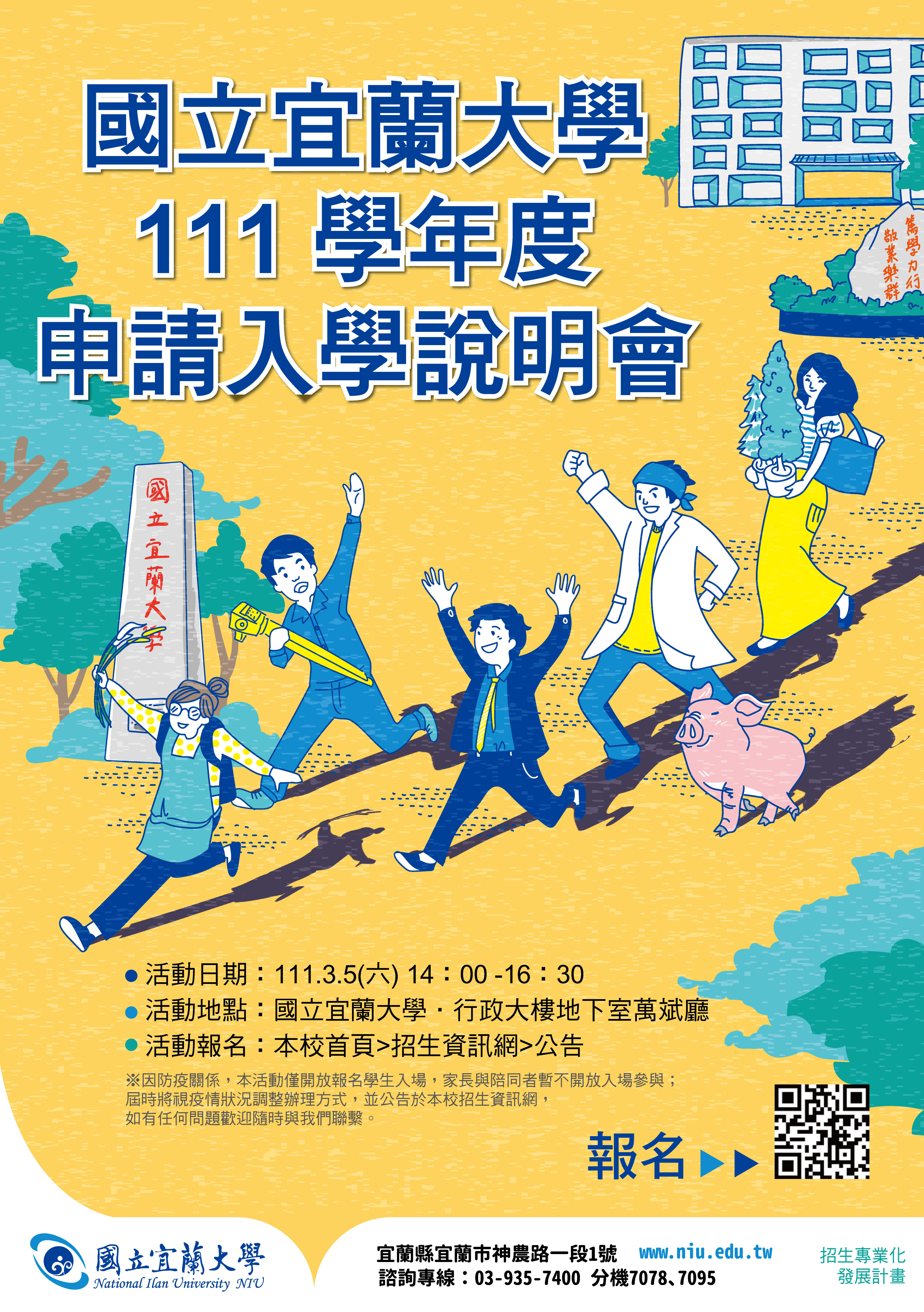 屆時將視疫情狀況調整辦理方式,並公告於國立宜蘭大學招生資訊網。
