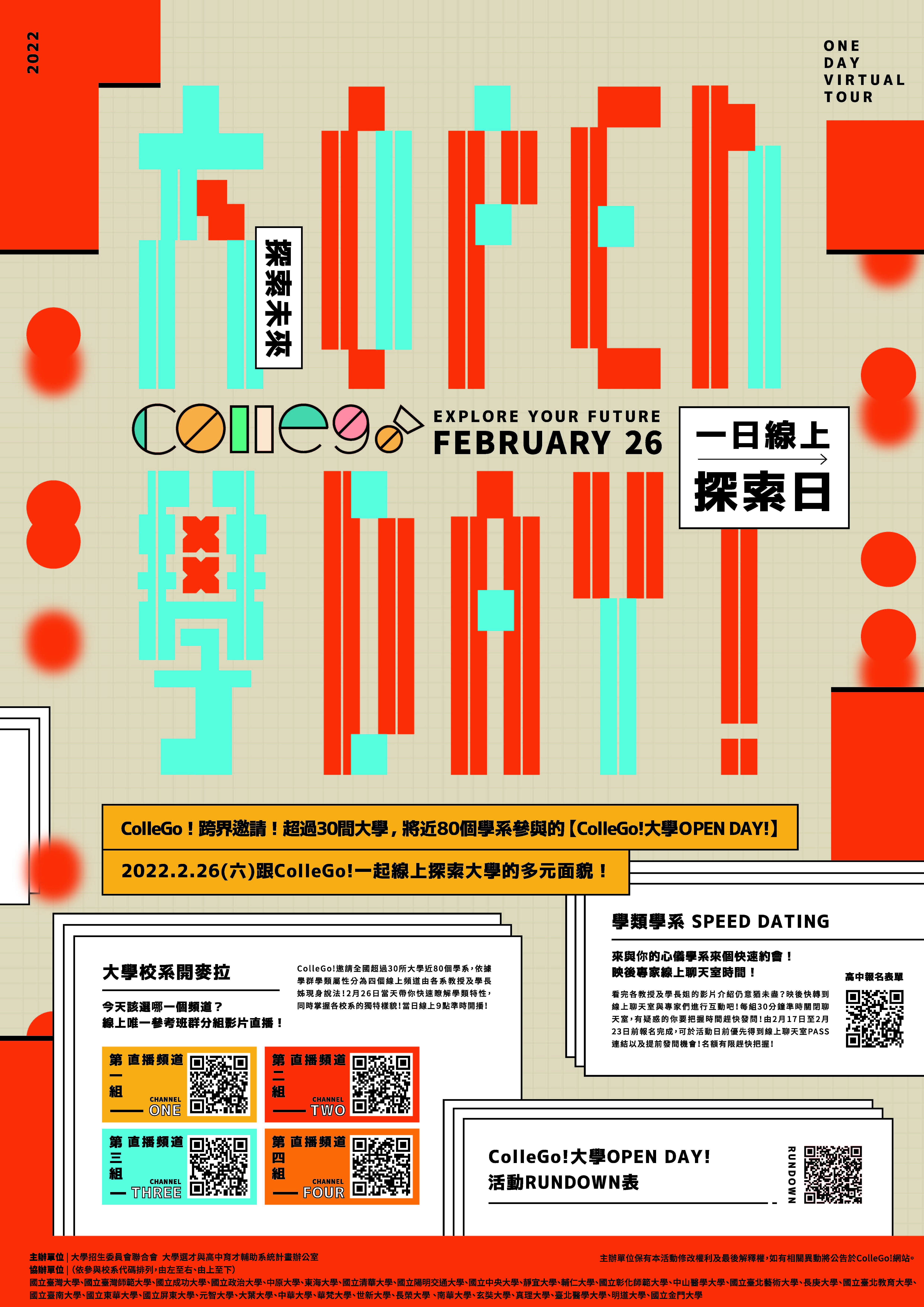 二、活動名稱:「ColleGo!大學OPEN DAY-一日線上探索日」