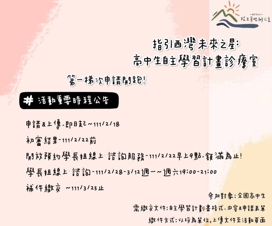 (一)自主學習計畫書格式與內容:格式不限,請以pdf檔繳交(