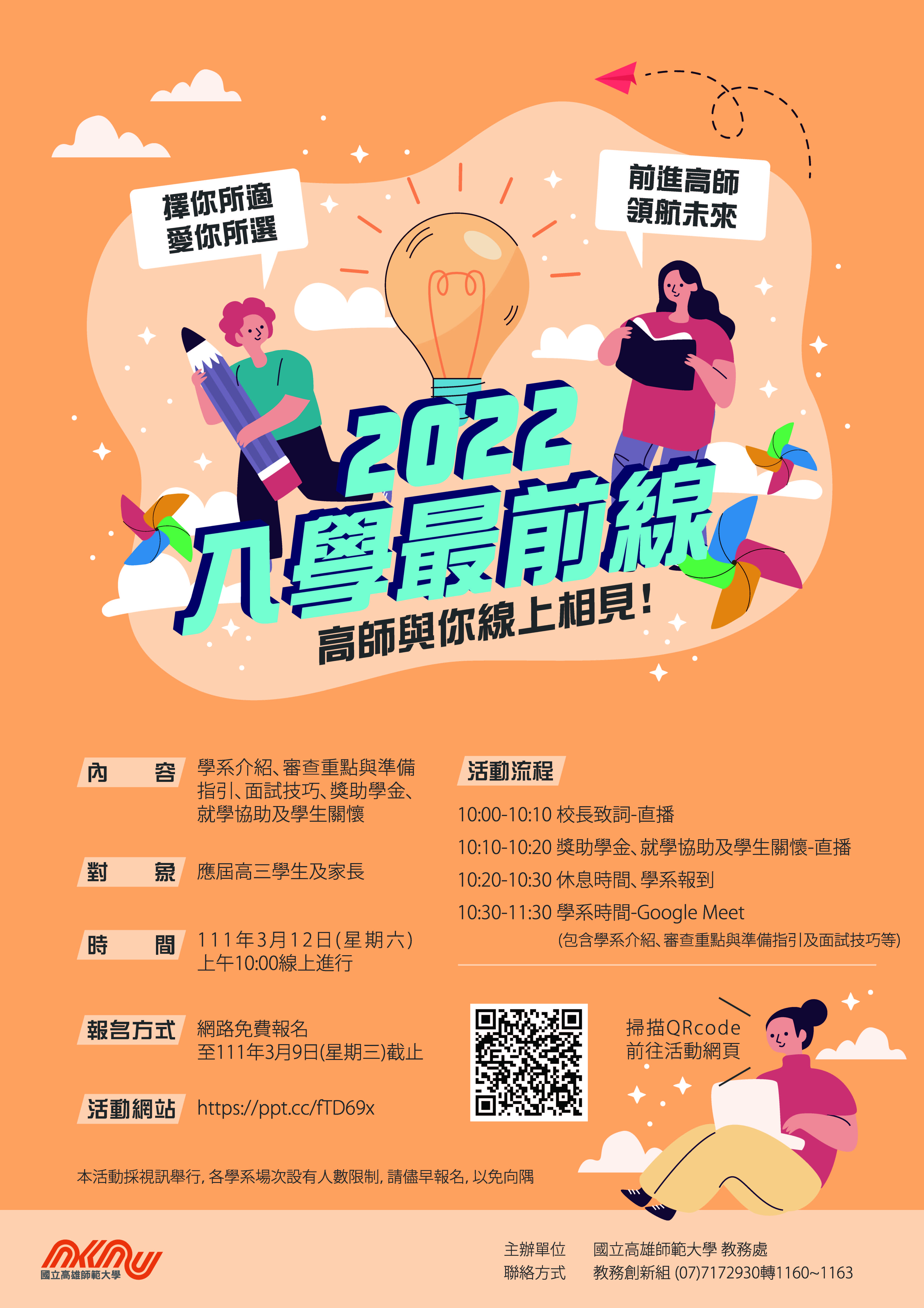 一、國立高雄師範大學「2022入學最前線」招生說明會。