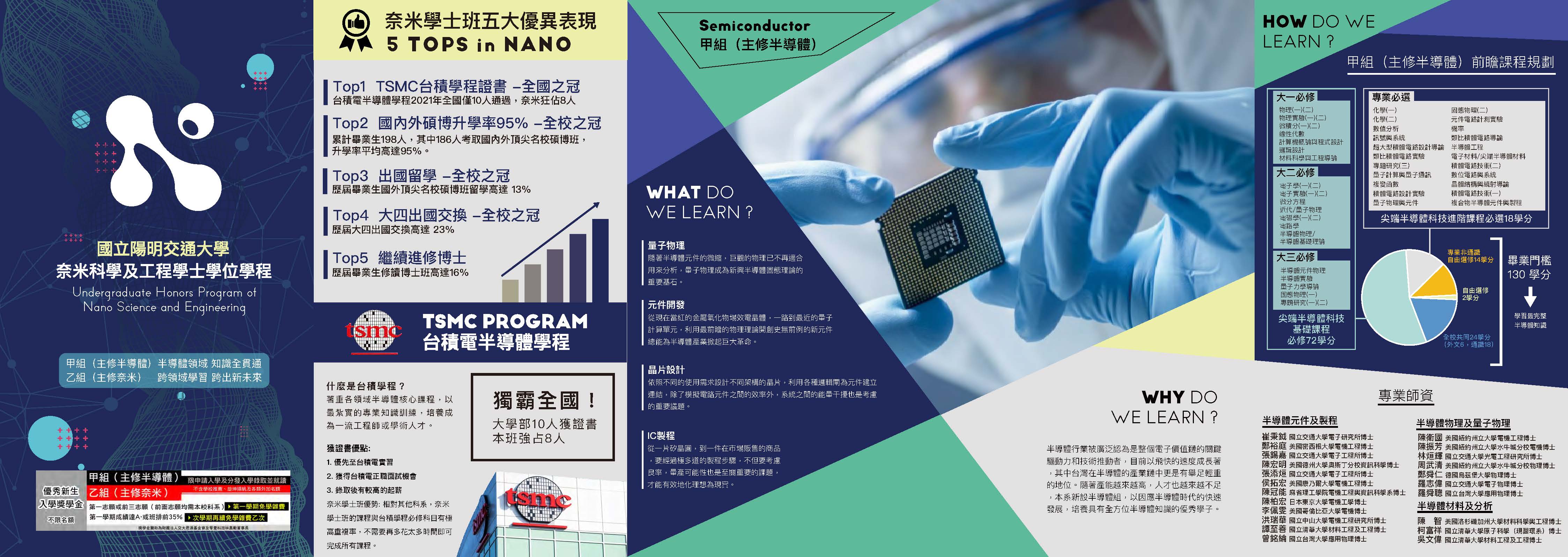 一、國立陽明交通大學奈米科學及工程學士學位學程111學年起增設甲組(主修半導體)及原班別改為乙組(主修奈米),