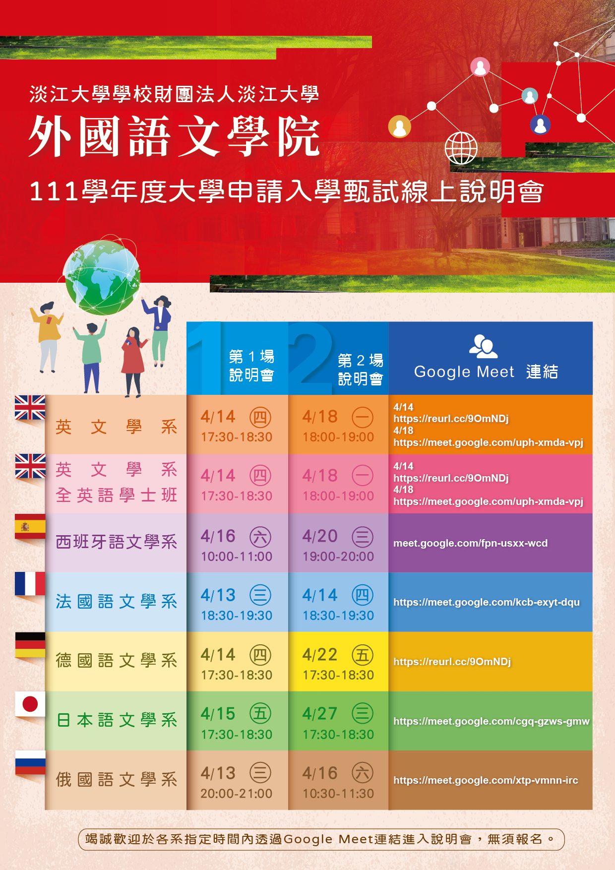 一、淡江大學外國語文學院辦理111申請入學甄試線上說明會
