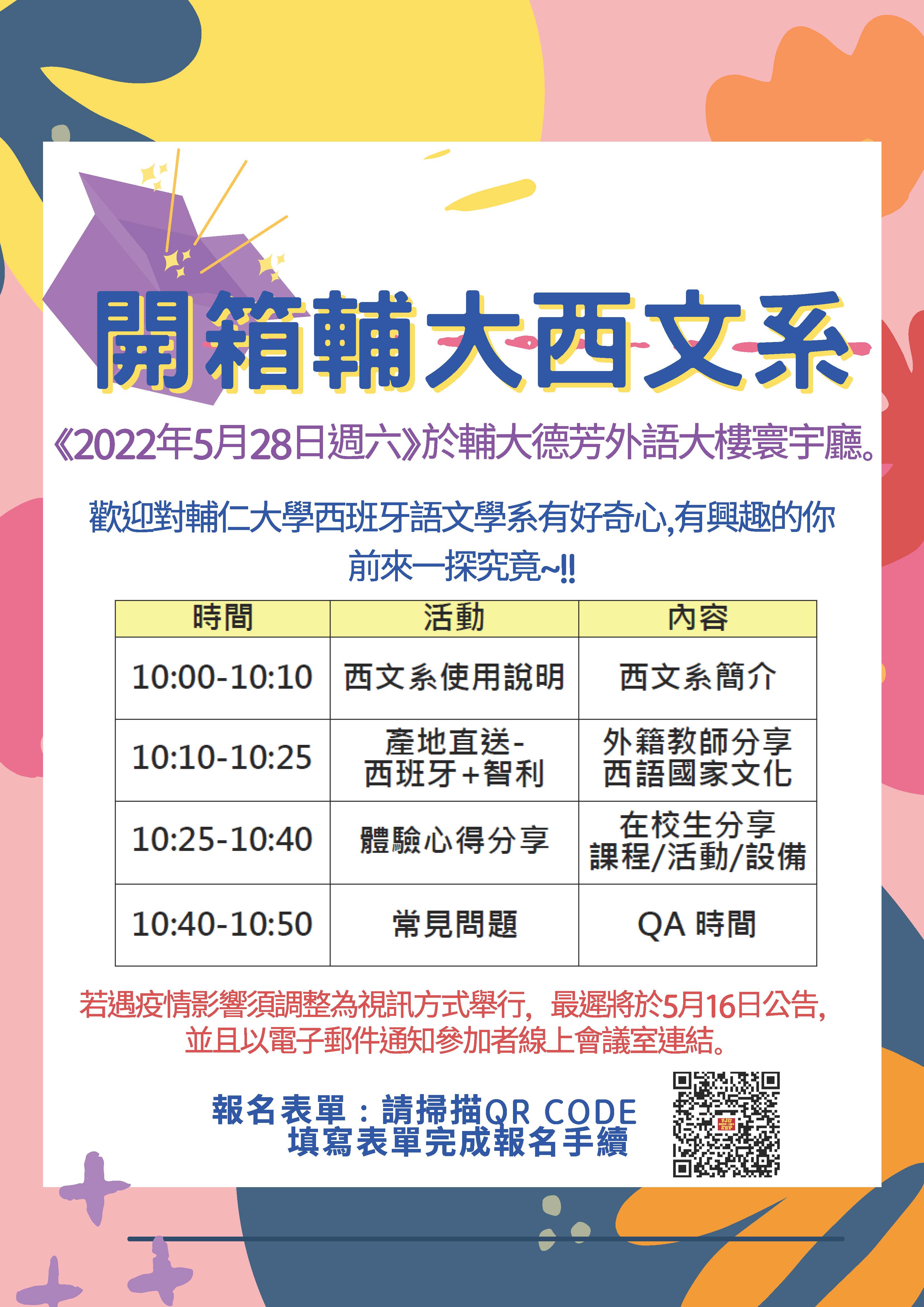 輔仁大學西班牙語文學系舉辦2022「開箱輔大西文系」活動資訊