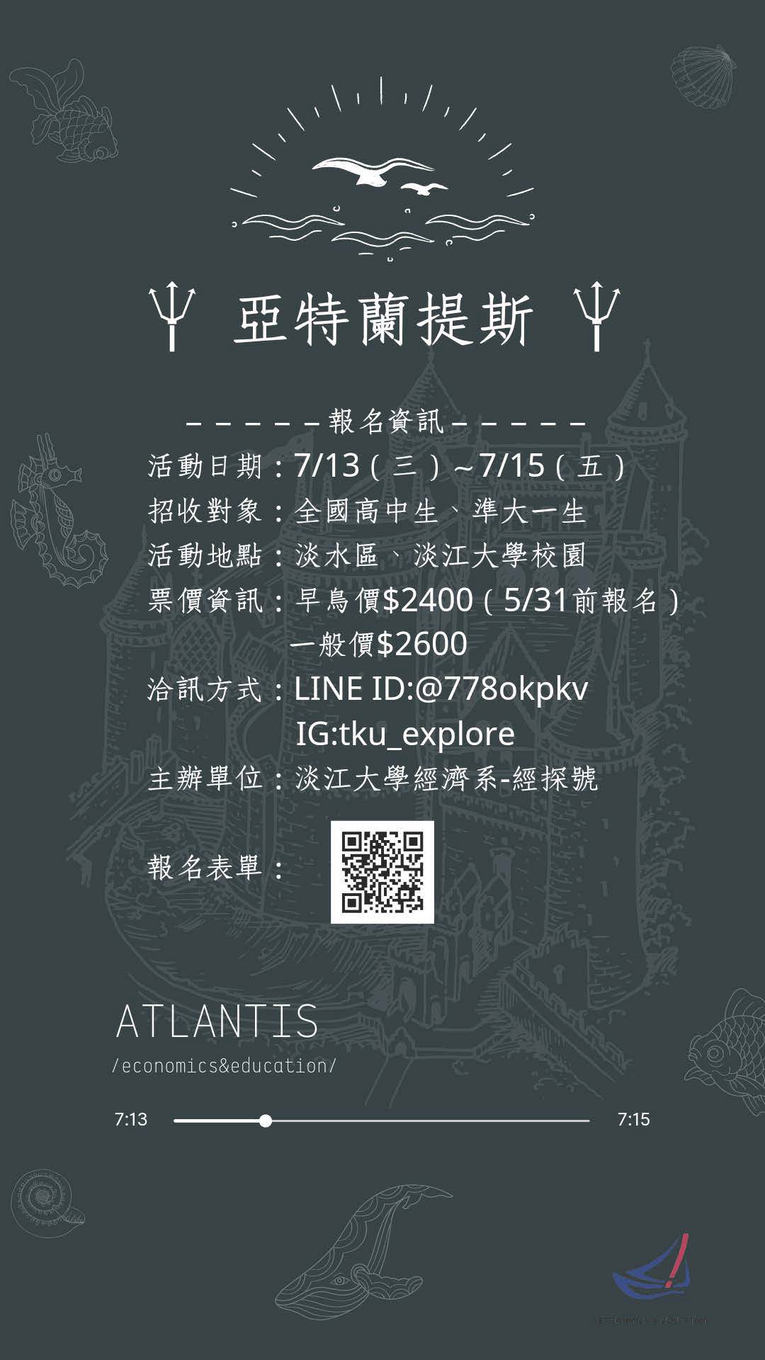 淡江大學經濟學系舉辦高中生暑假學習營:「淡江大學探索營-亞特蘭提斯」