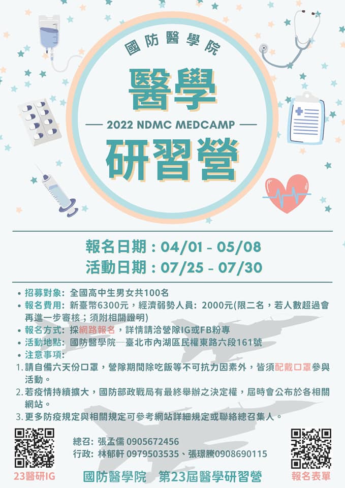 營隊網站:https://ndmcmedcamp23rd.weebly.com/