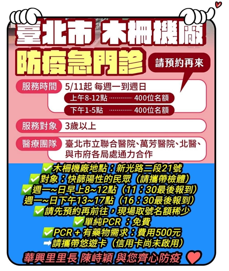 快篩陽防疫門診:500元(含掛號費、診察費及藥品費)。