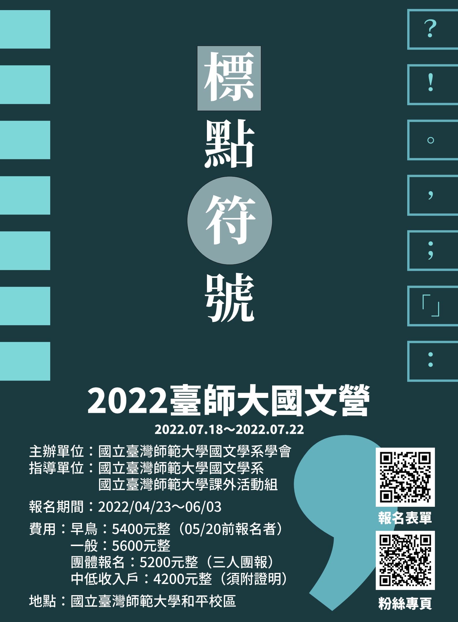 2022臺師大國文營《標點符號》FB粉絲專頁:https://reurl.cc/8op9j7。