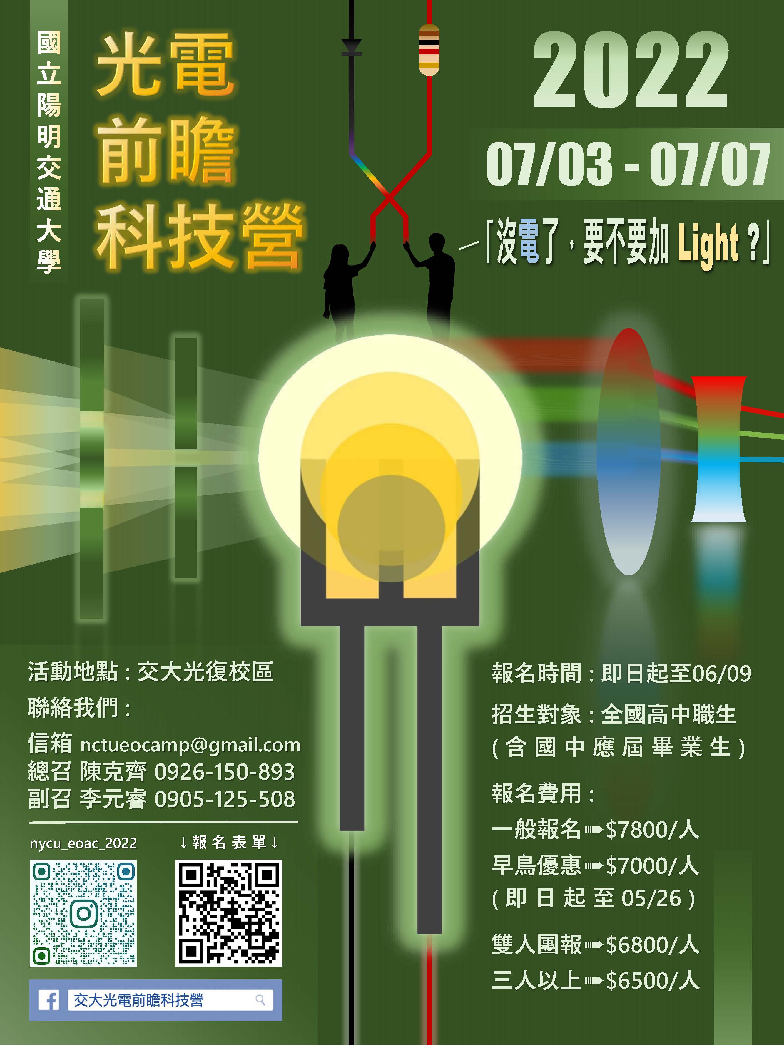 營隊名稱:2022交大光電前瞻科技營「沒電了,要不要加Lig