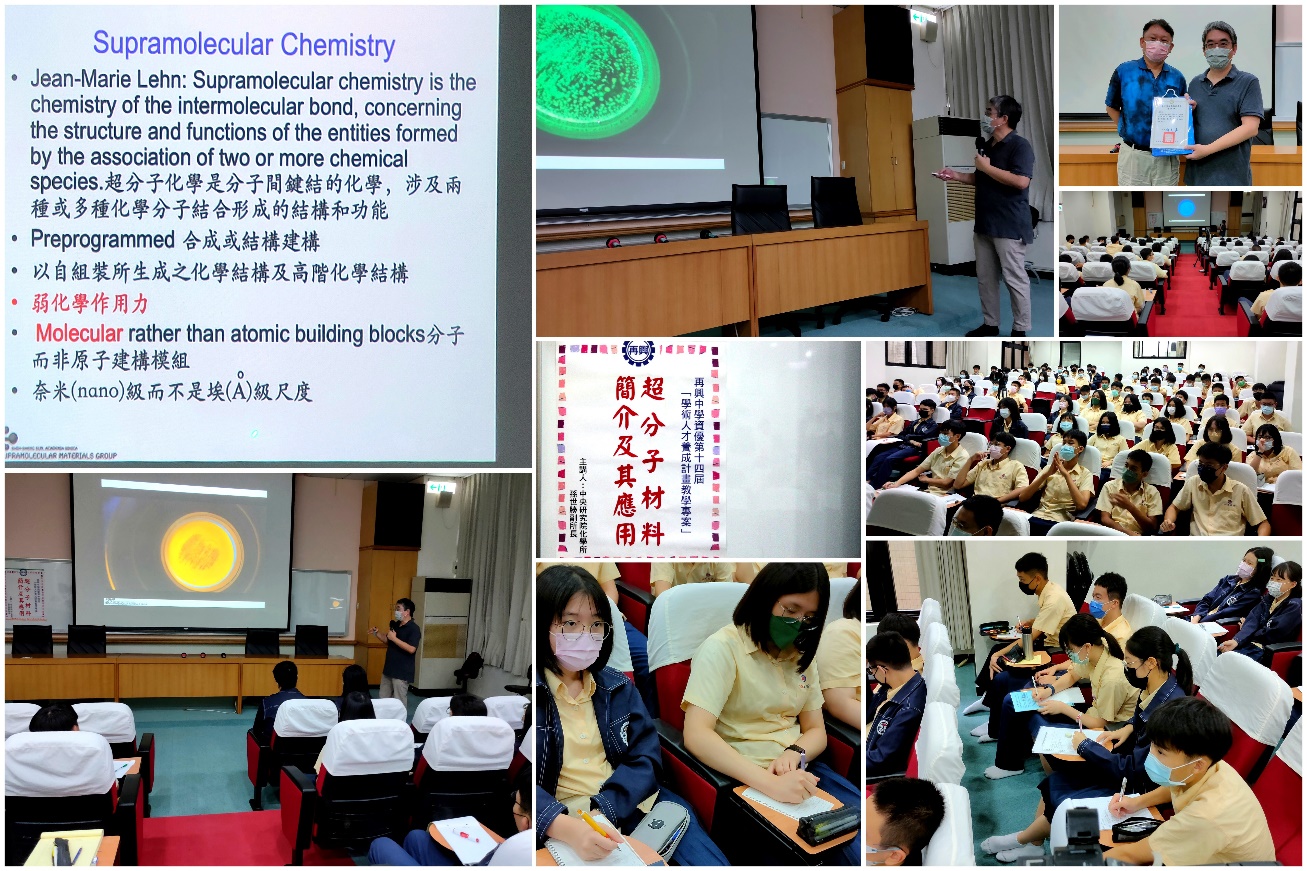 第14屆學術人才養成計畫在8月5日(五)下午,再度邀請中央研究院化學所孫世勝副所長蒞校,以「超分子材料簡介及其應用」為題進行演講。以下是高三同學講座報導: