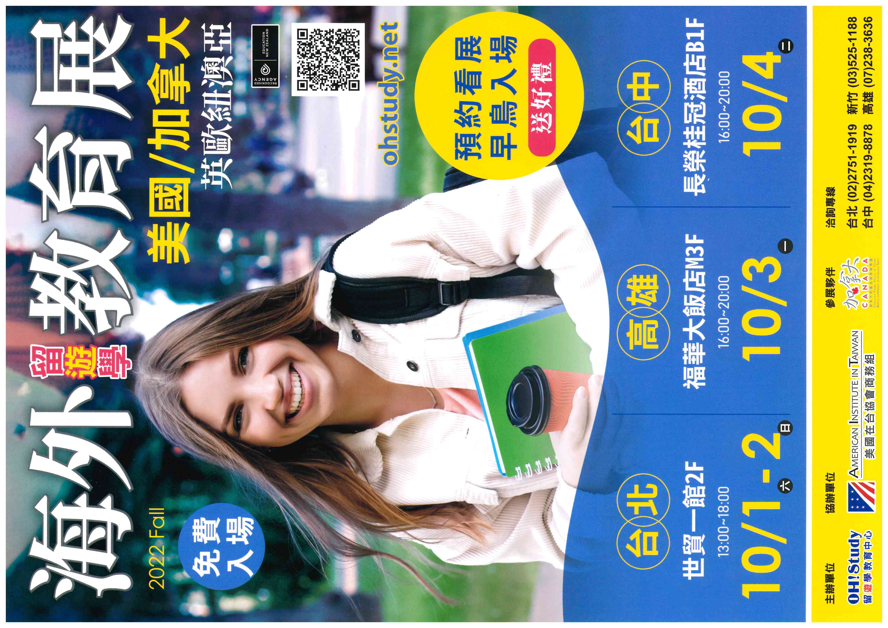 一 、OH! Study主辦之2022秋季『海外留遊學教育展』,有多所美國、