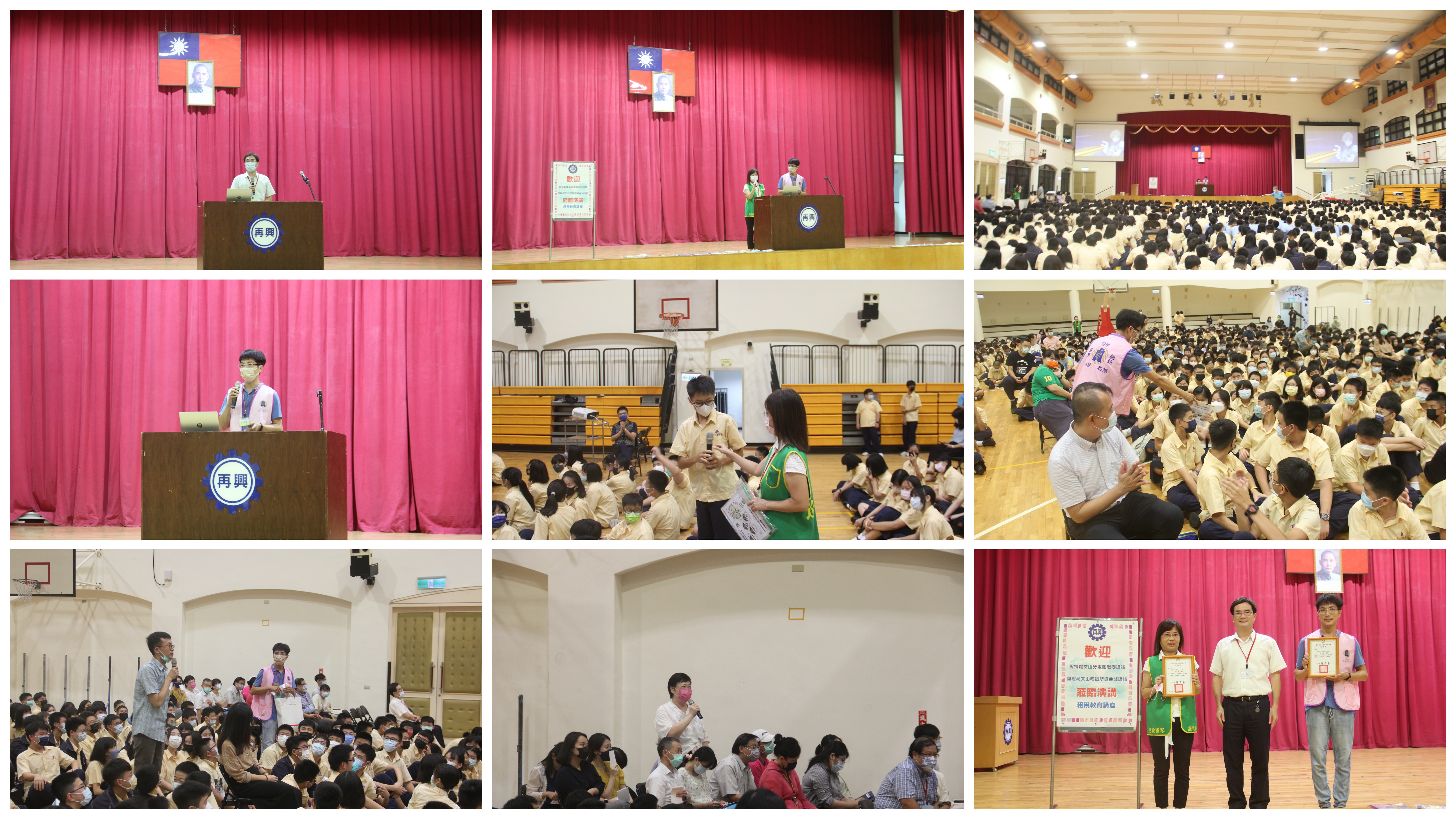 本校為協助學生租稅觀念,特邀請國稅局吳金城稅務員以及臺北市稅捐稽徵處文山分處張淑卿股長於111年10月5日國中部週會時間蒞校實施租稅專題宣導活動,活動於本校知新樓B3體育館舉行,國中全體學生參加,吳講師以介紹簡要稅制及電子發票的使用方式來協助學生了解現行國內各項稅務知識、張股長則以熱情活潑的互動問答方式來介紹國稅與地方稅的差異,藉以增進學生的理財概念,活動尾聲時亦提供精美獎品贈送學生。